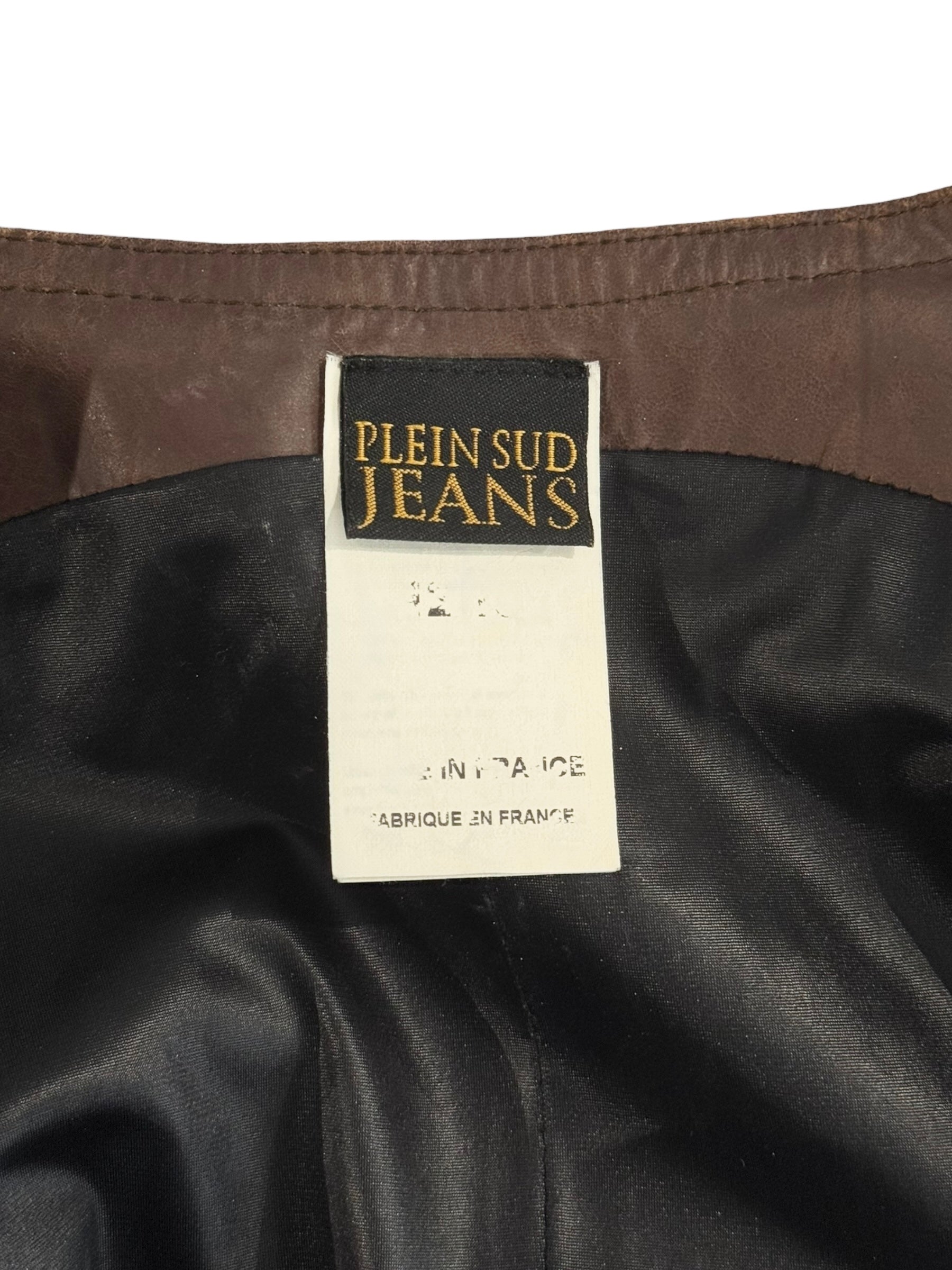 PLEIN SUD JEANS 2000s BROWN LEATHER PATCHWORK VEST