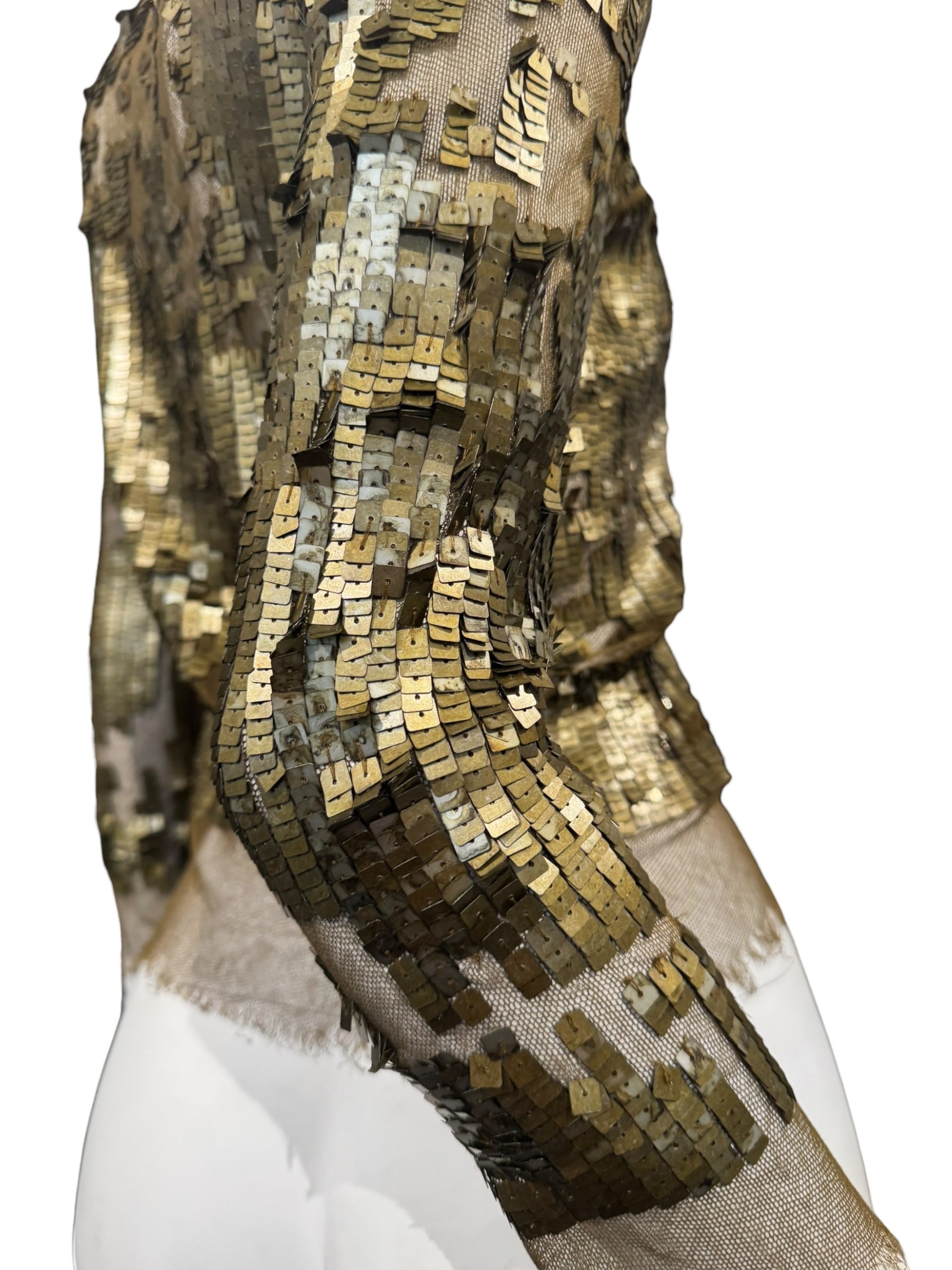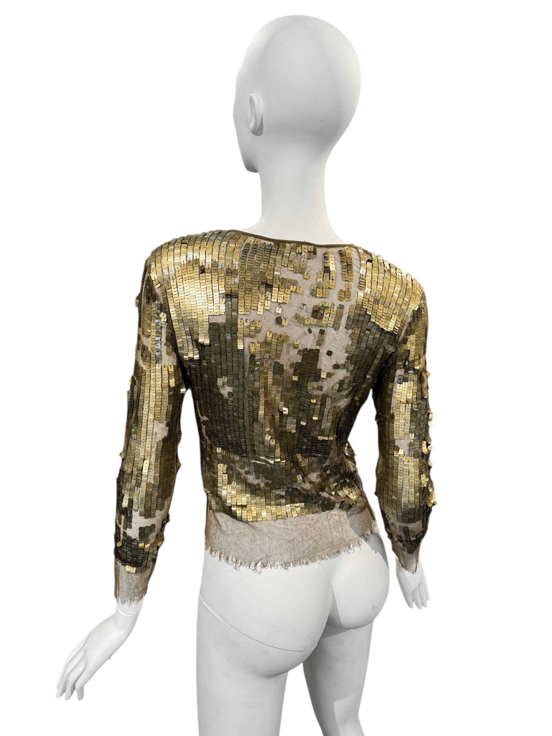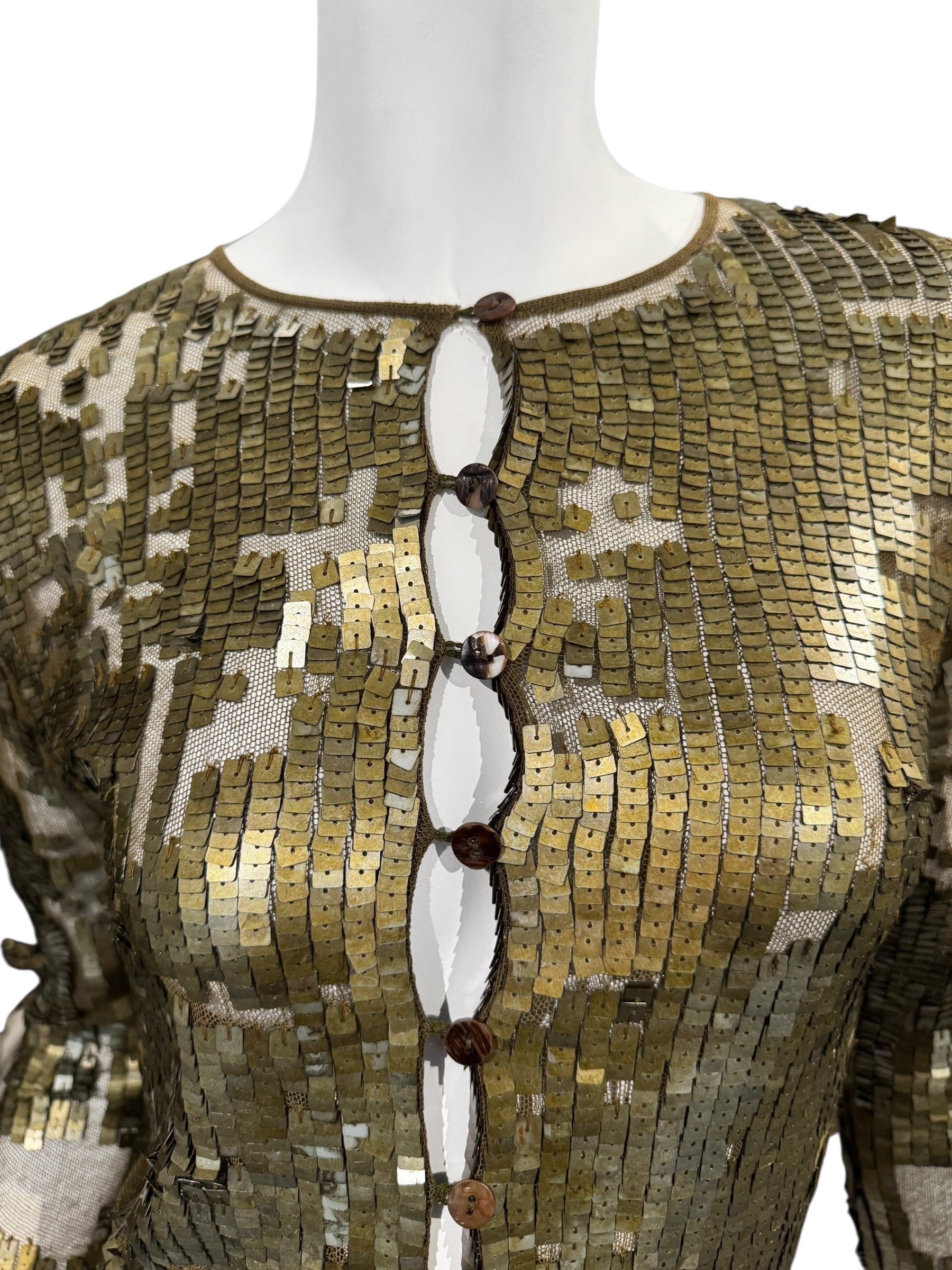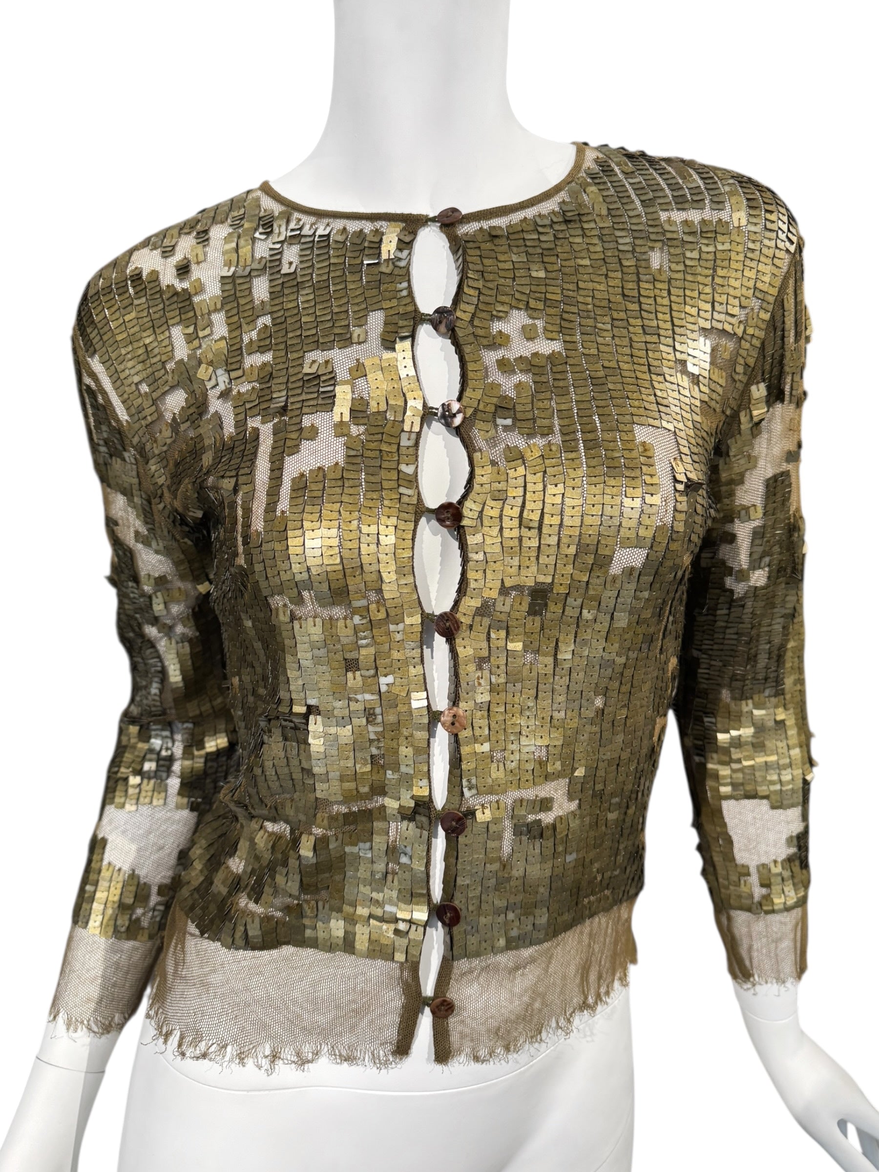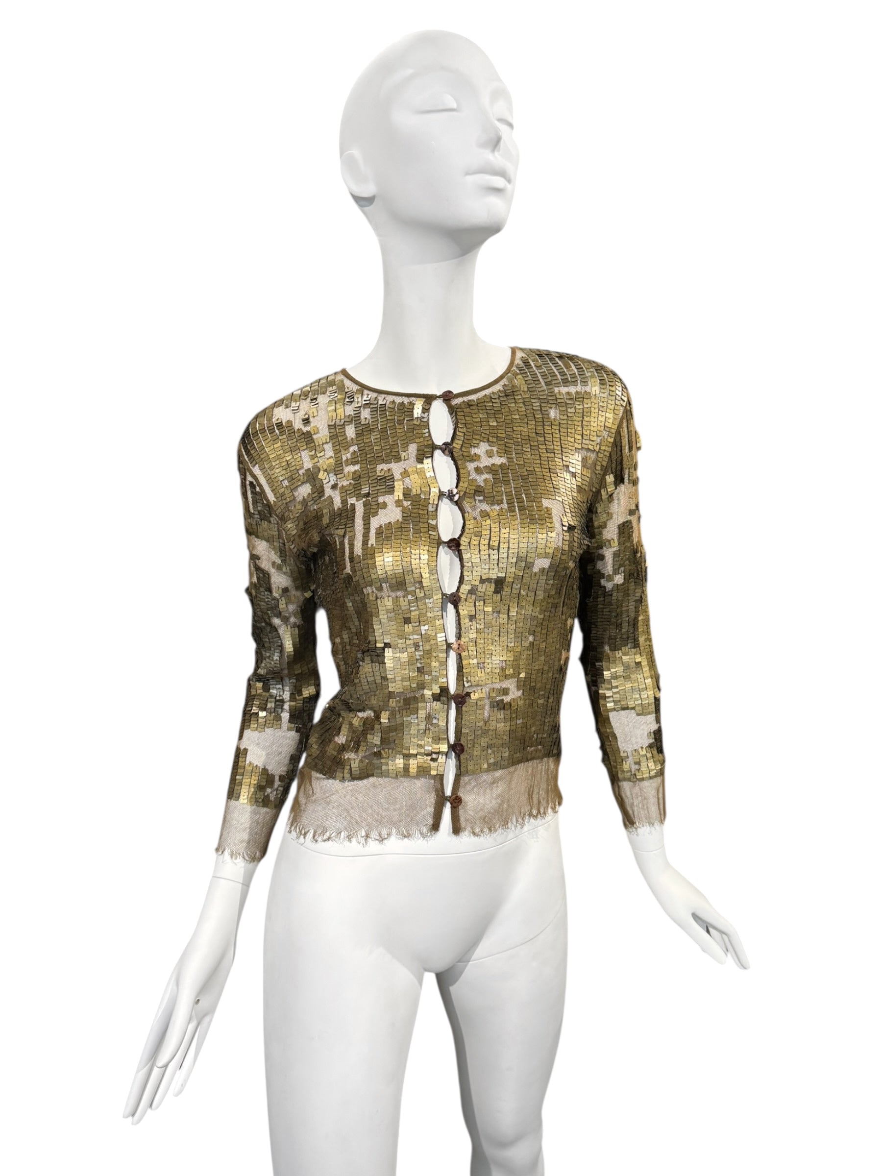 PLEIN SUD SS2001 KAKI TULLE SEQUINS EMBELLISHED CARDIGAN