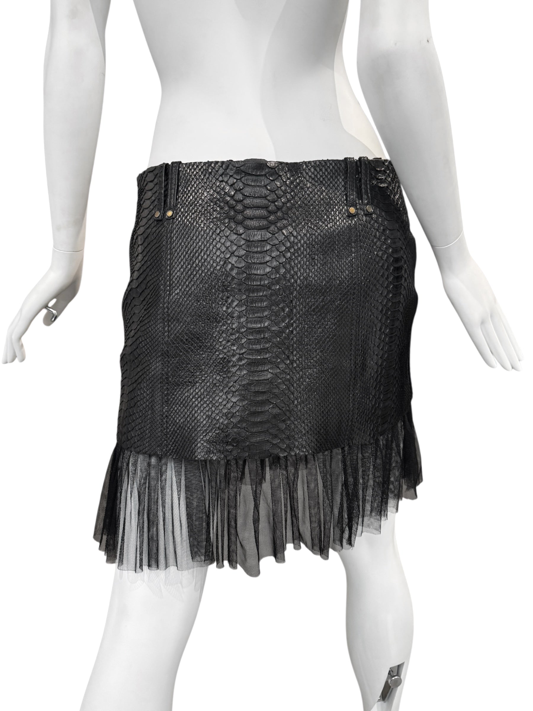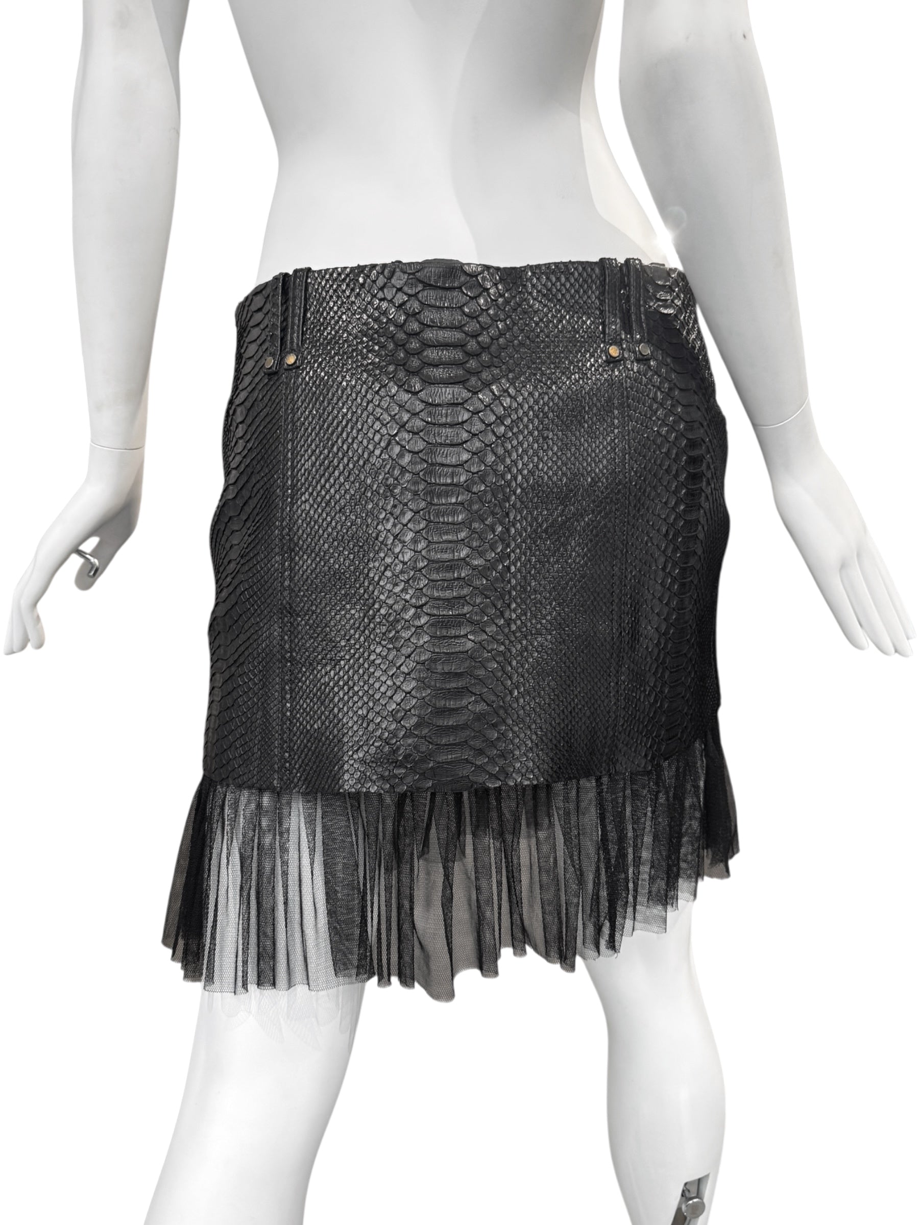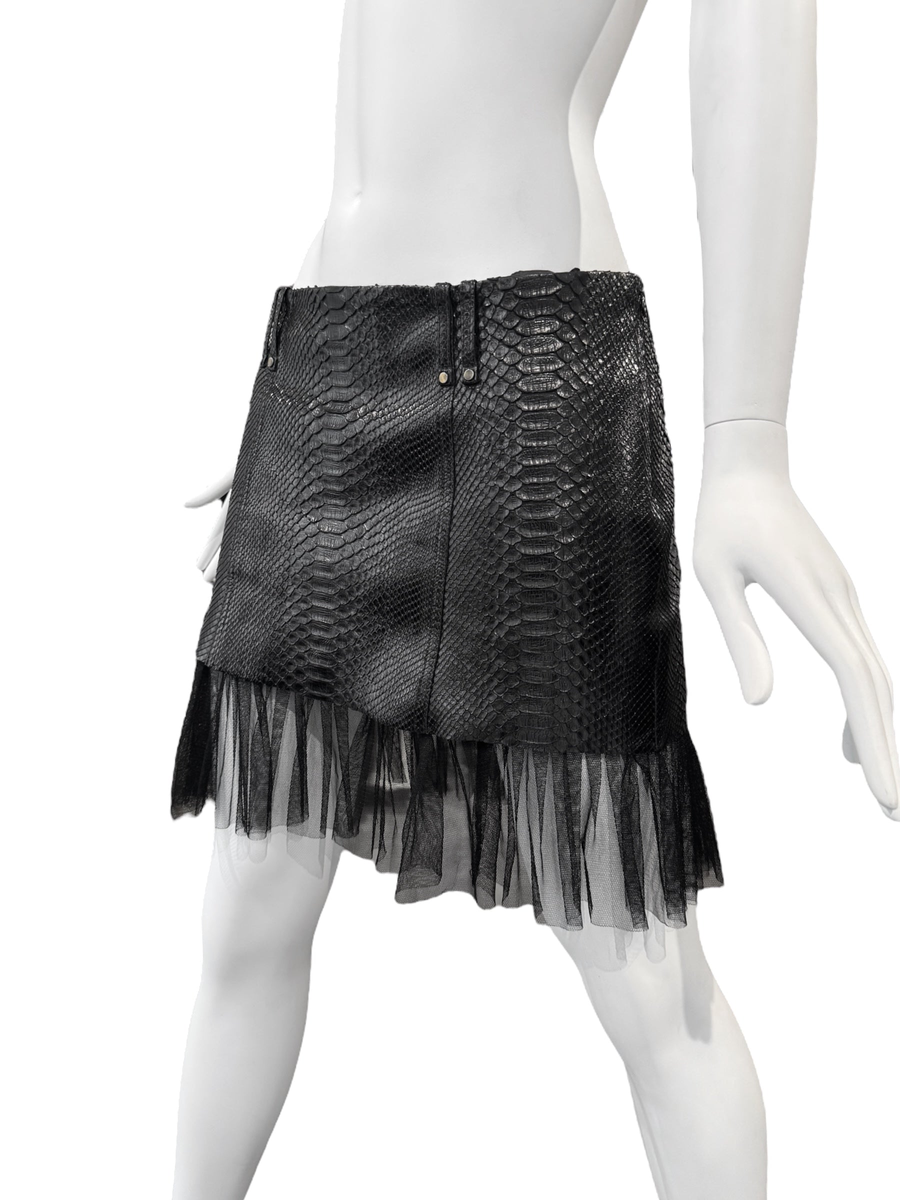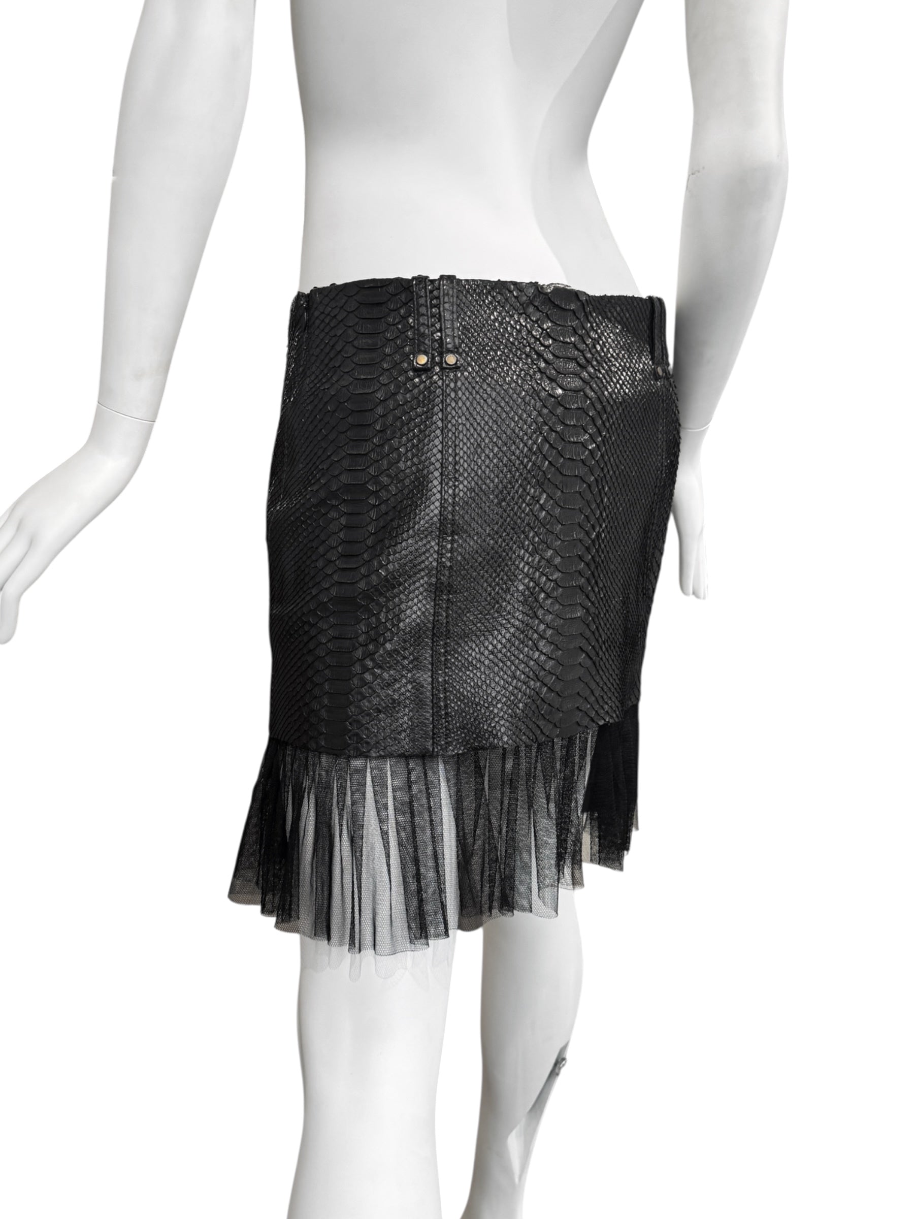PLEIN SUD SS2011 BLACK PYTHON LEATHER TULLE HEM MINI SKIRT