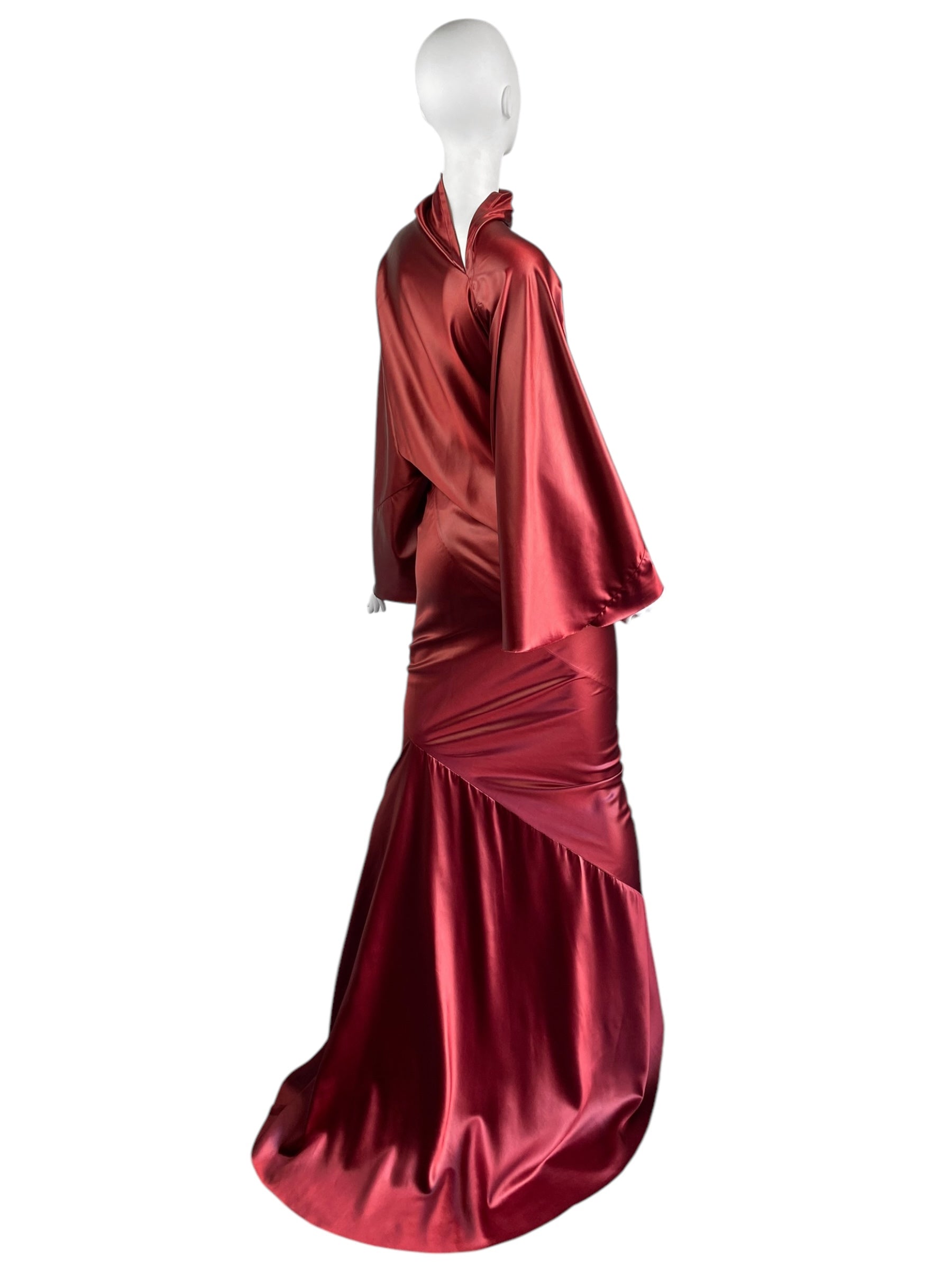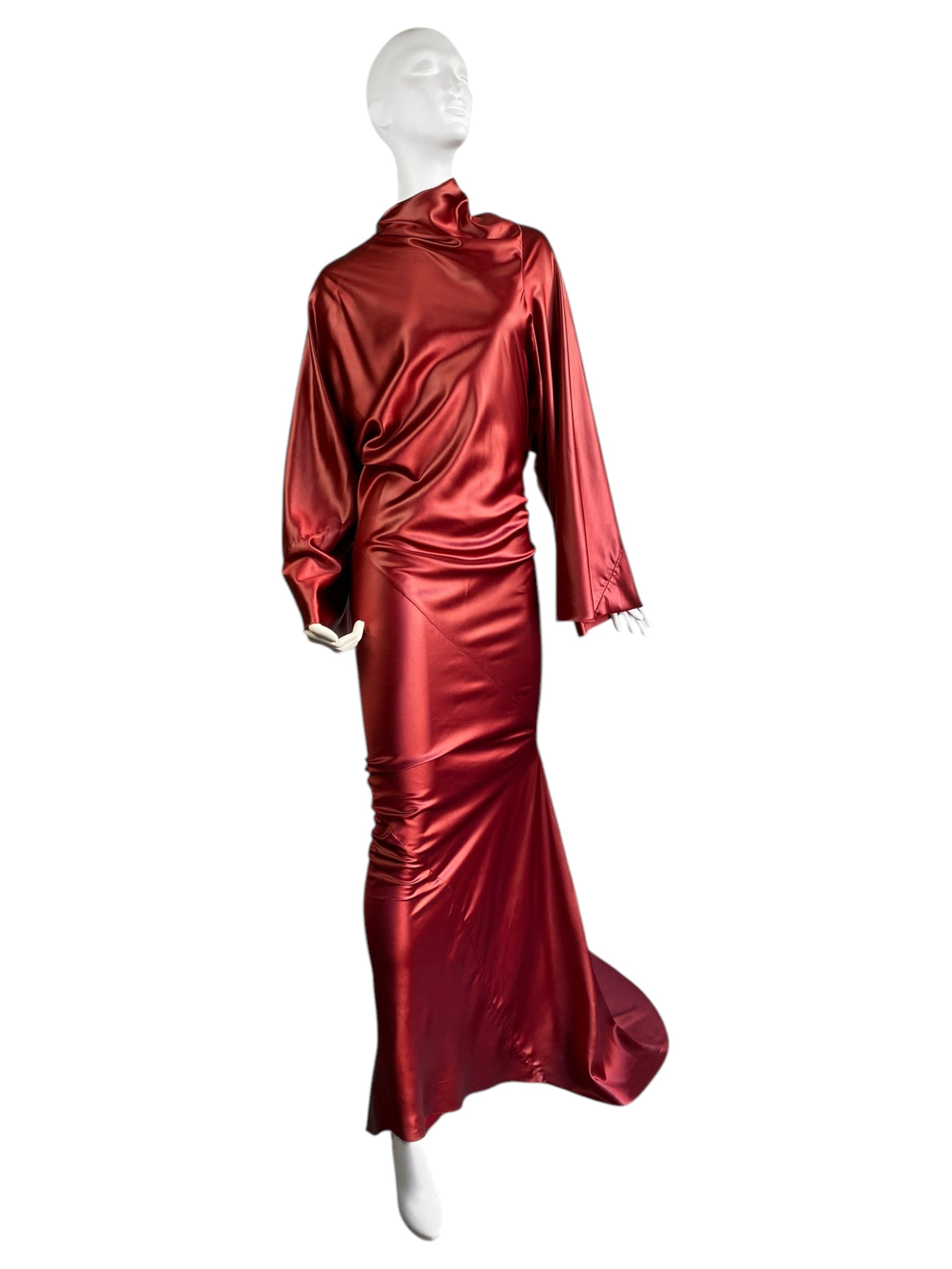 RICK OWENS FW2020 RED SATIN DRAPED GOWN