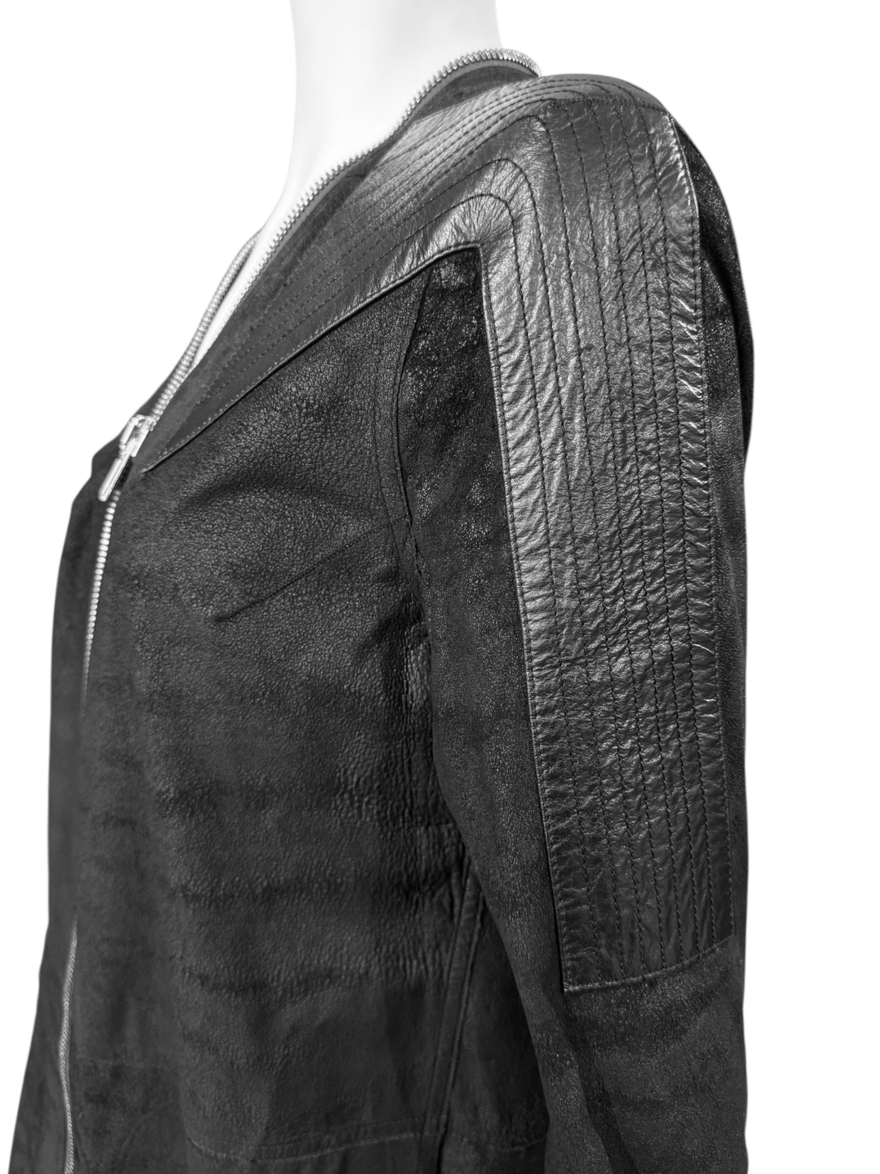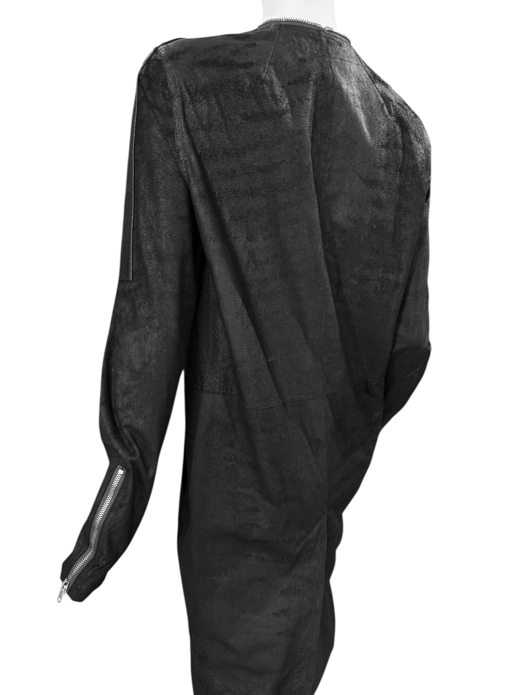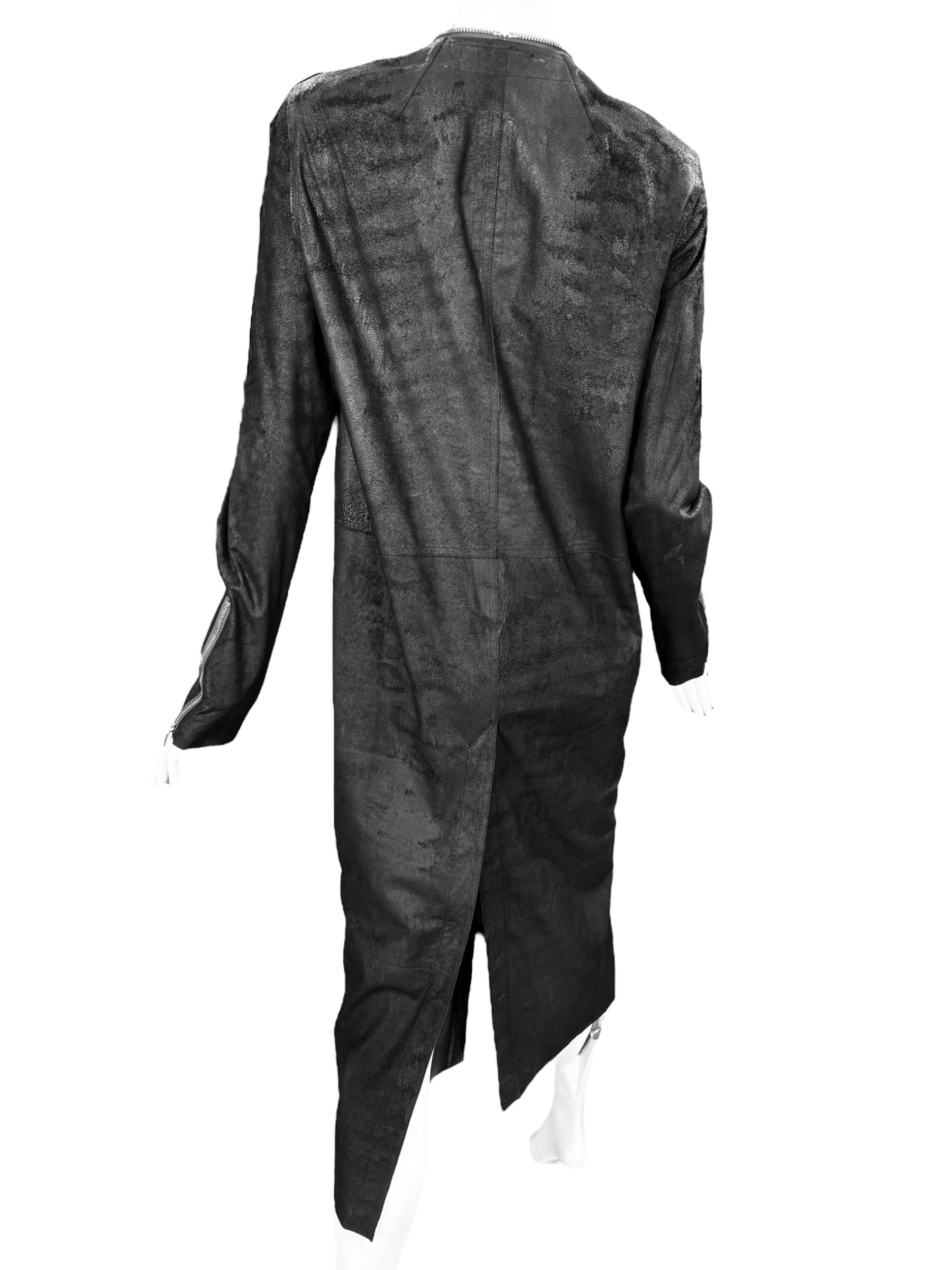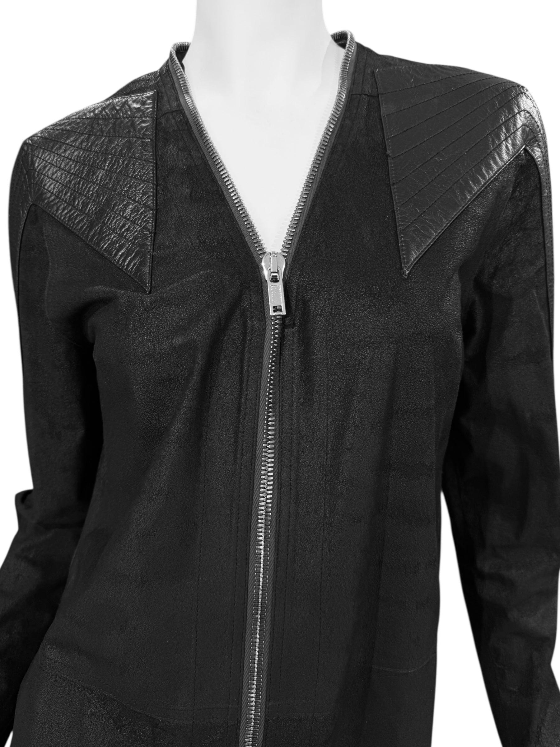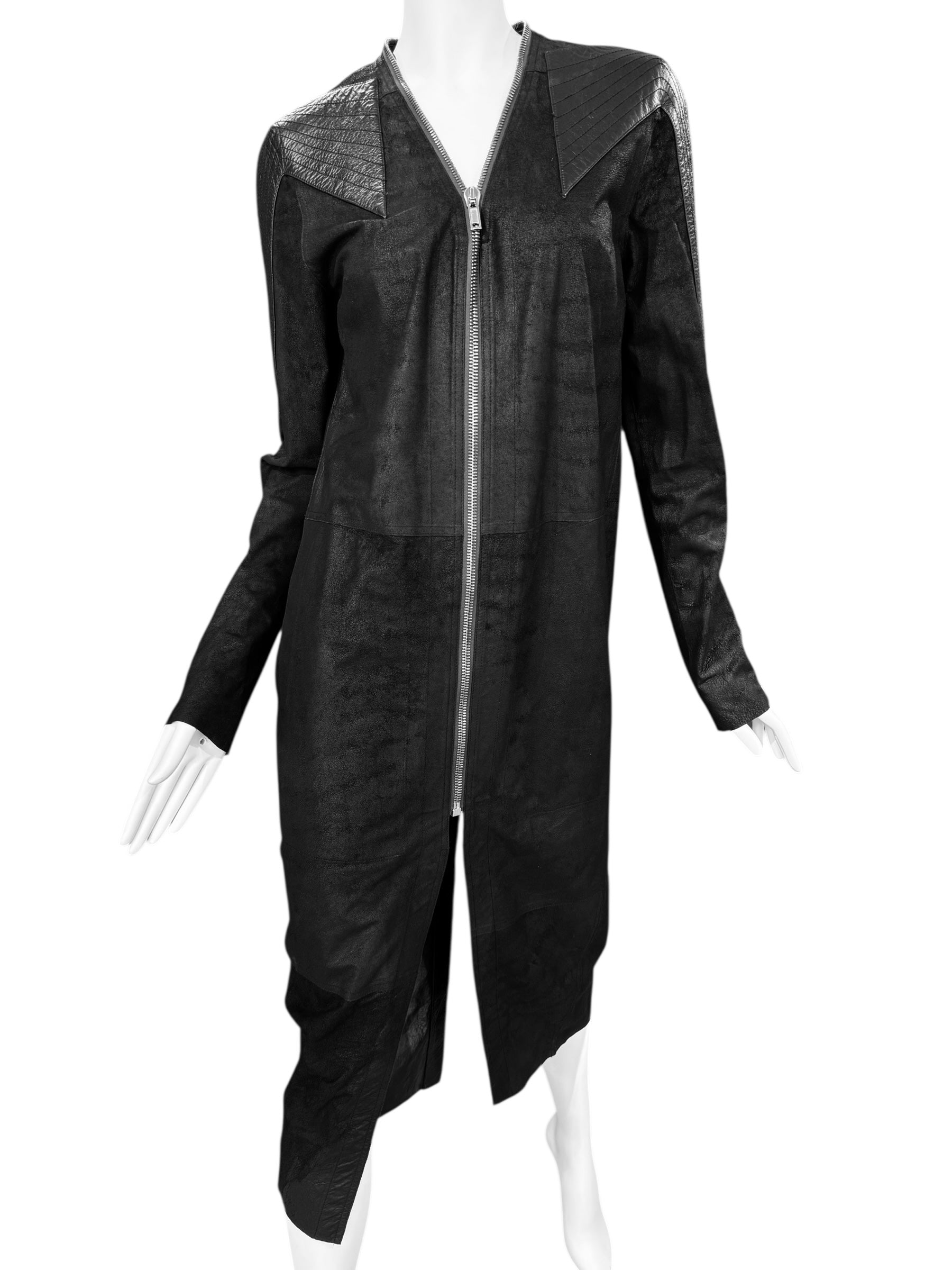 RICK OWENS SS2021 BLACK LEATHER ZIP COAT