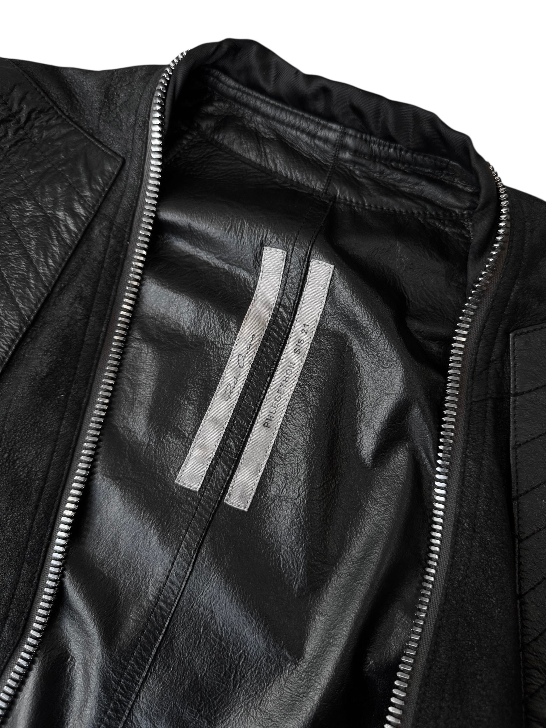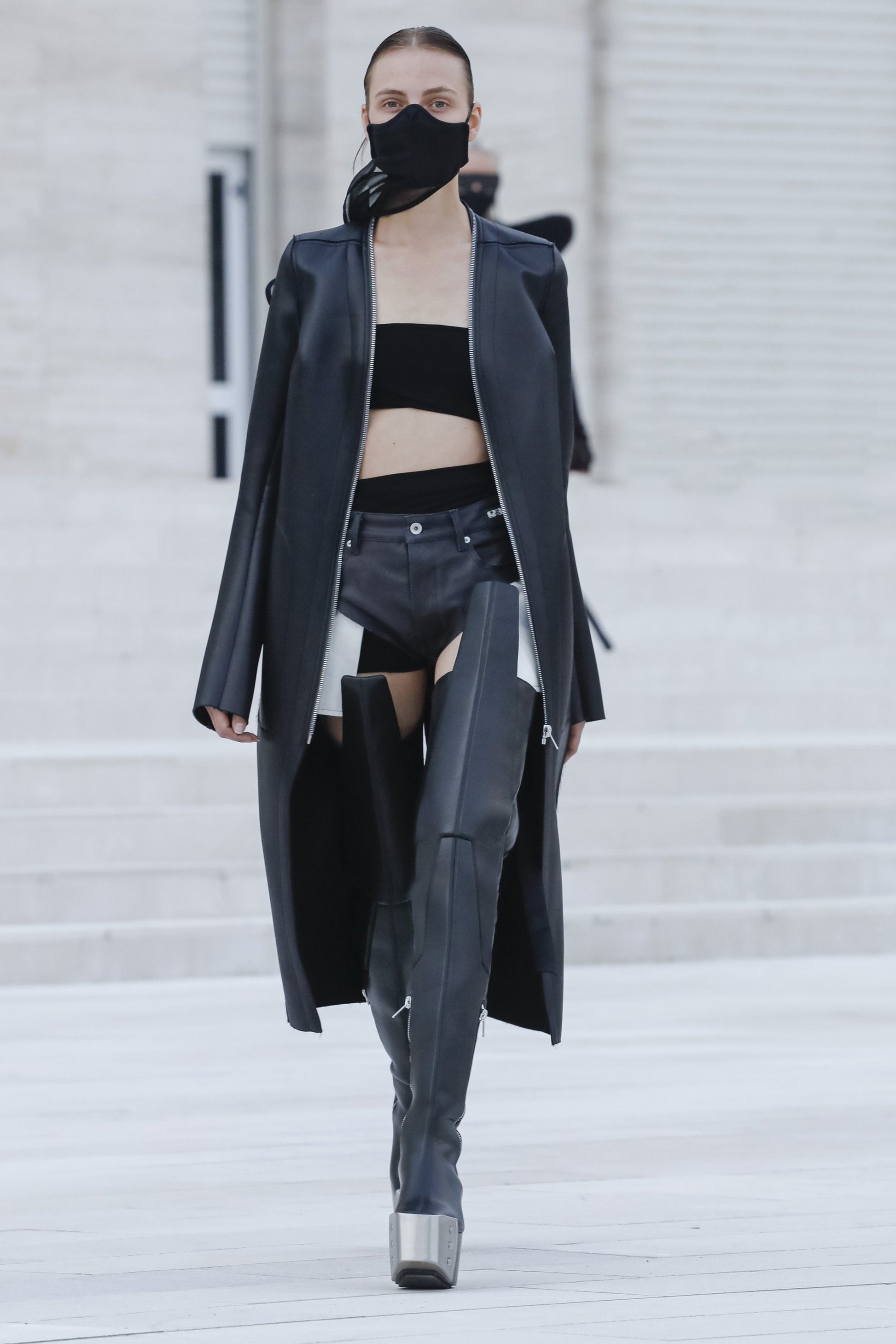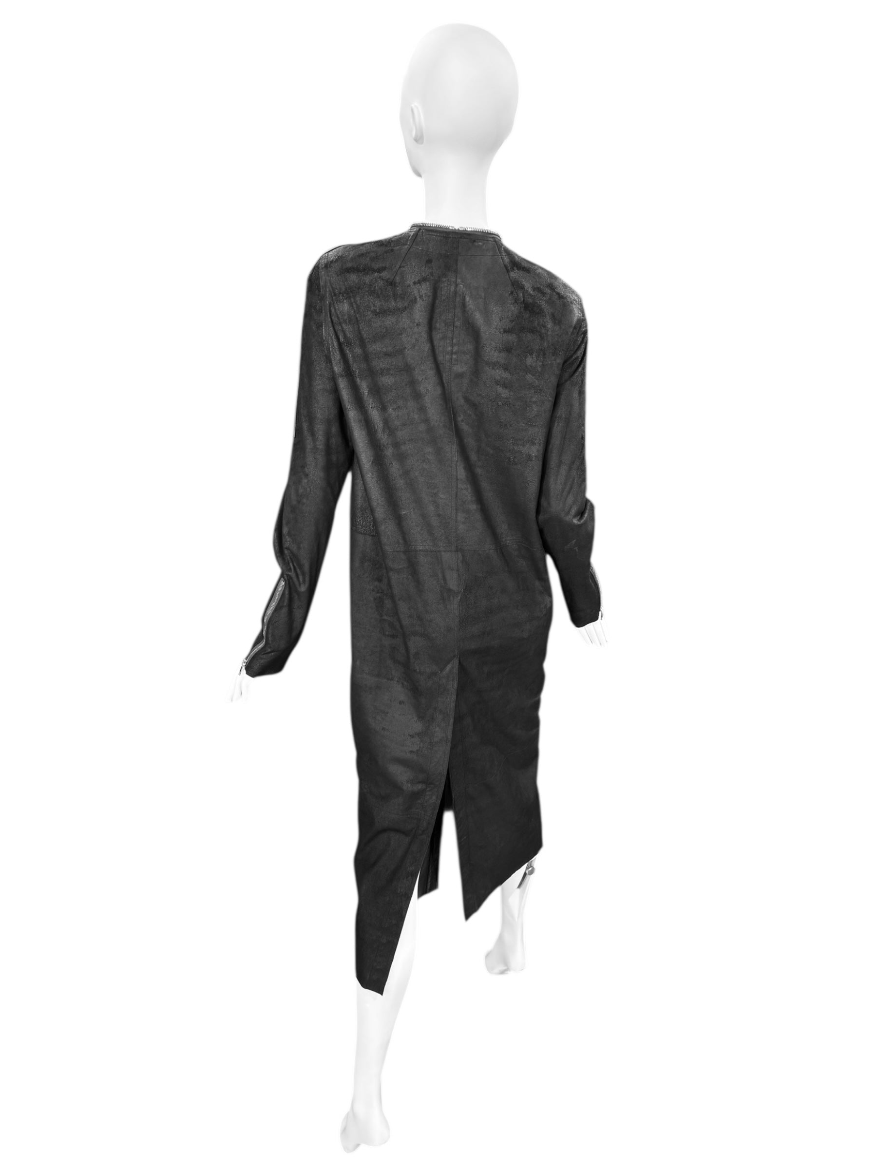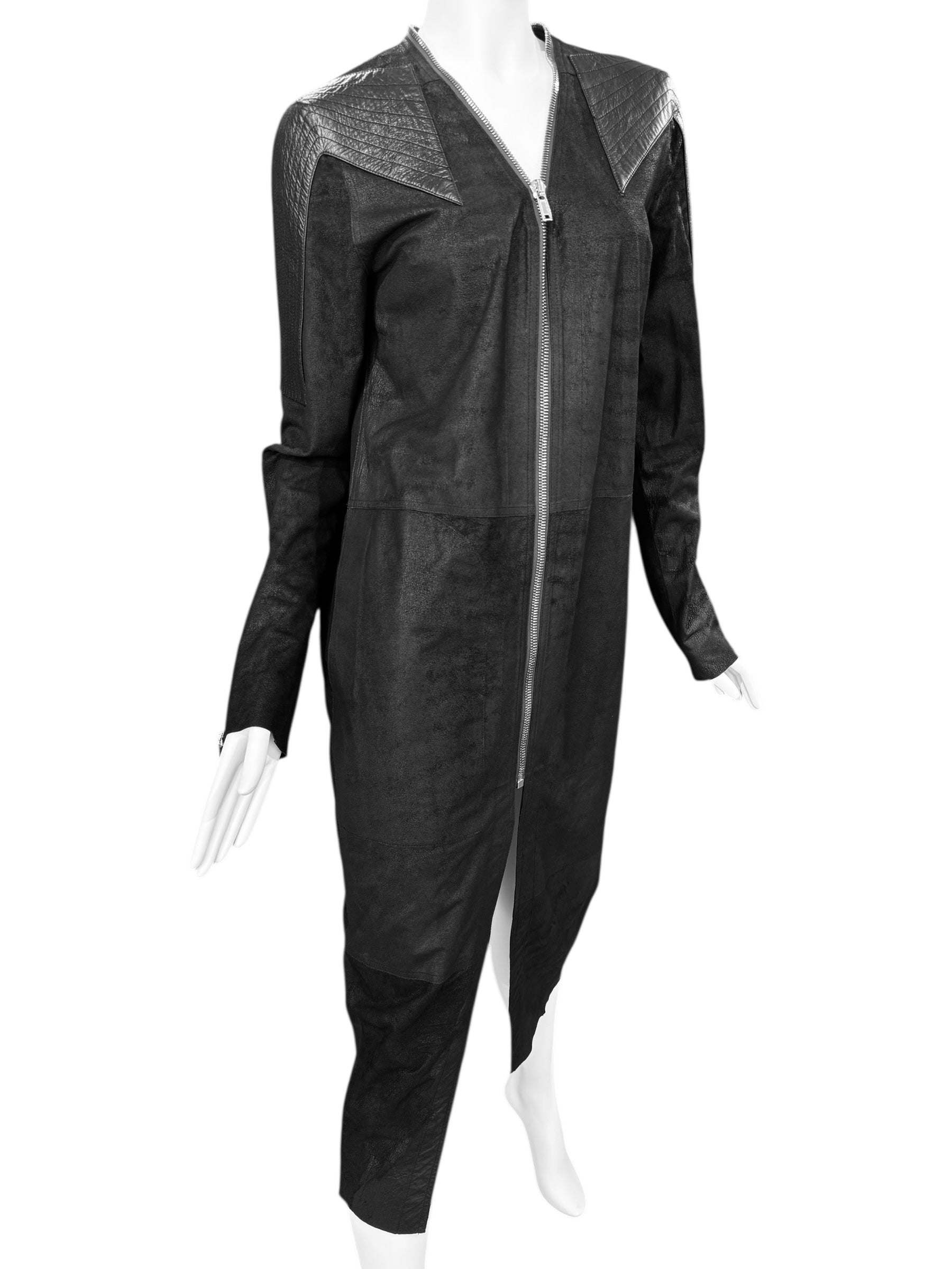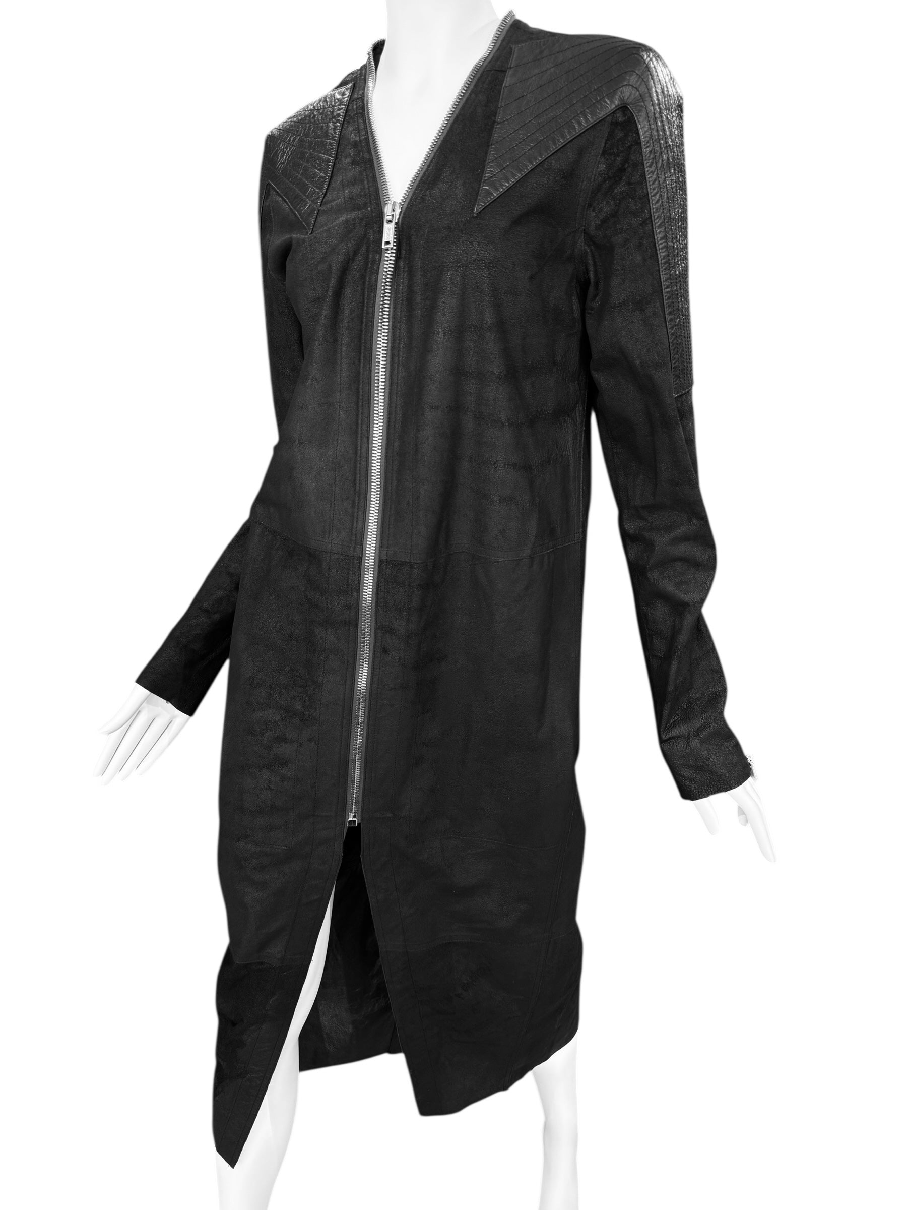 RICK OWENS SS2021 BLACK LEATHER ZIP COAT