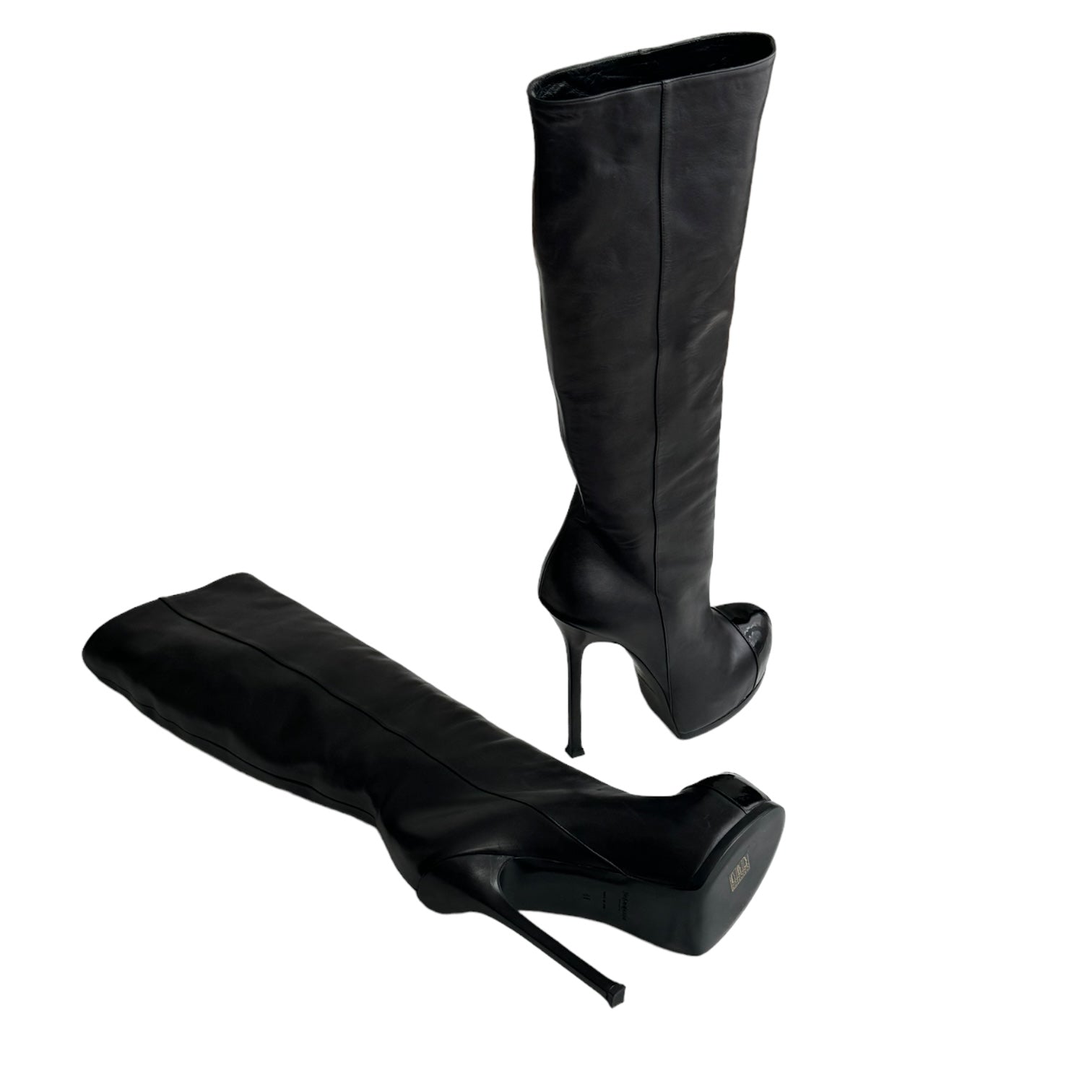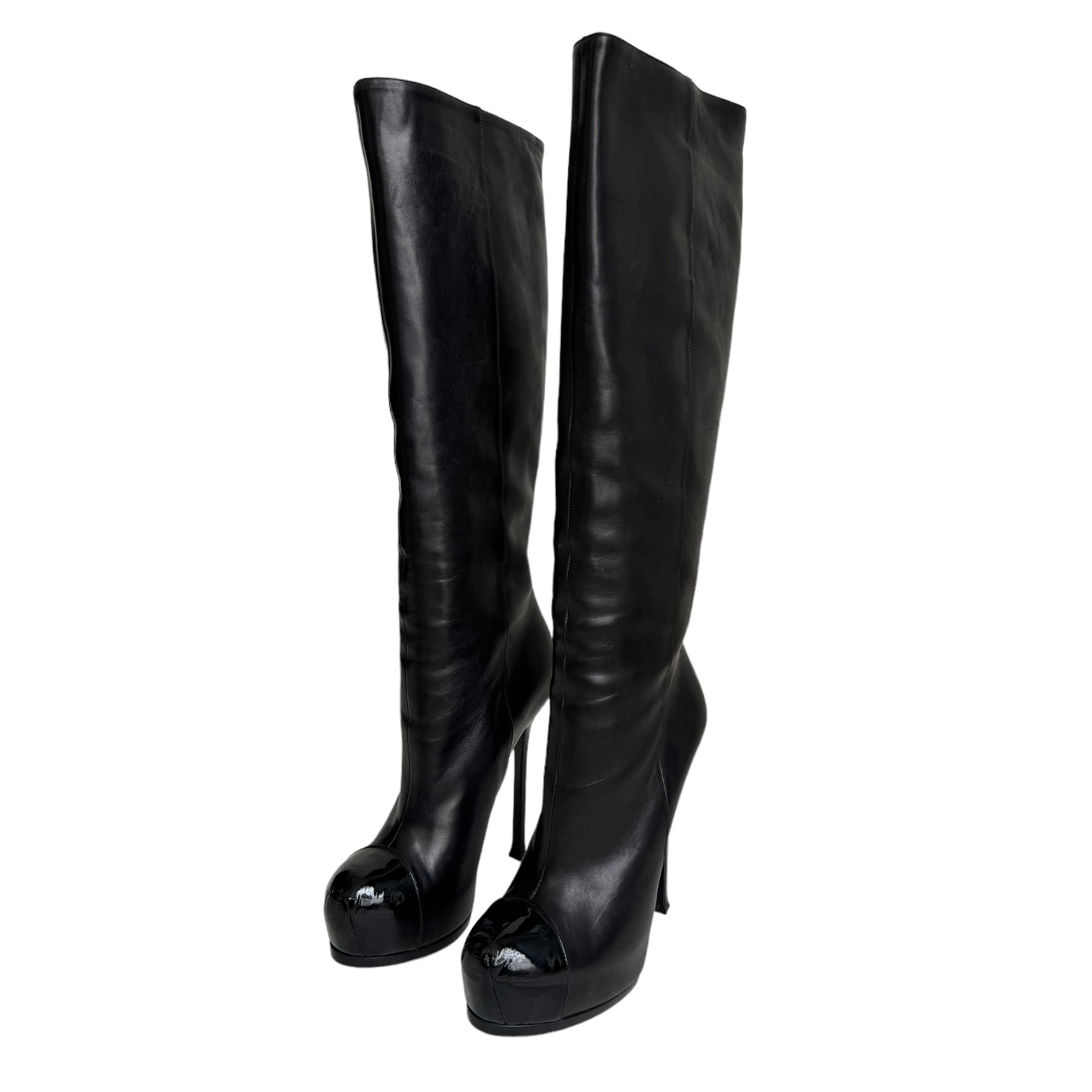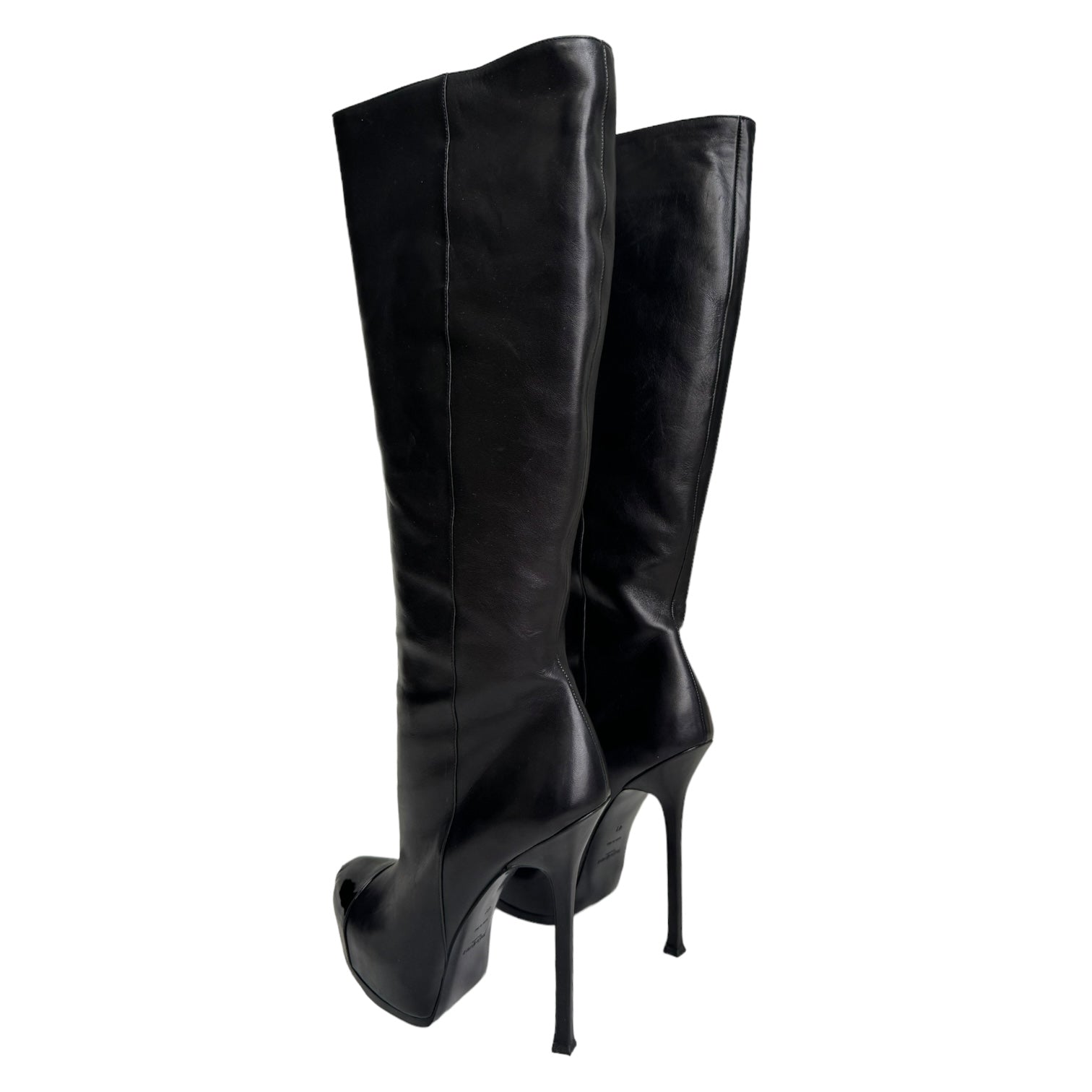 YVES SAINT LAURENT FW2008 BY STEFANO PILATI BLACK LEATHER TRIBTOO TOE-CAP BOOTS