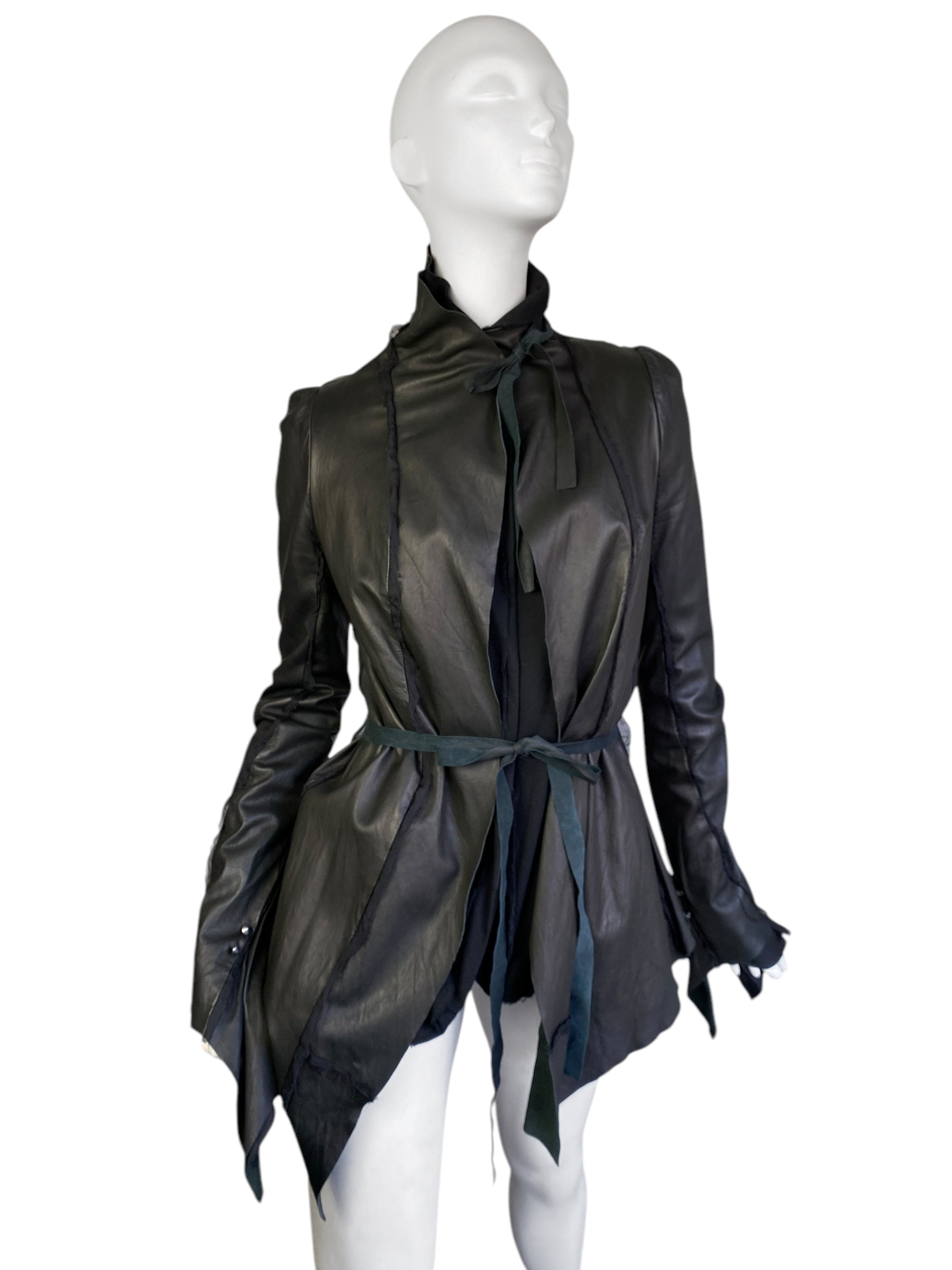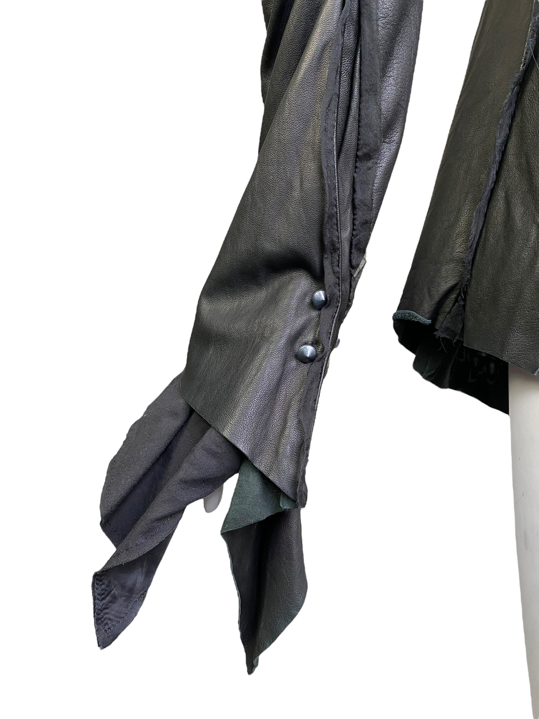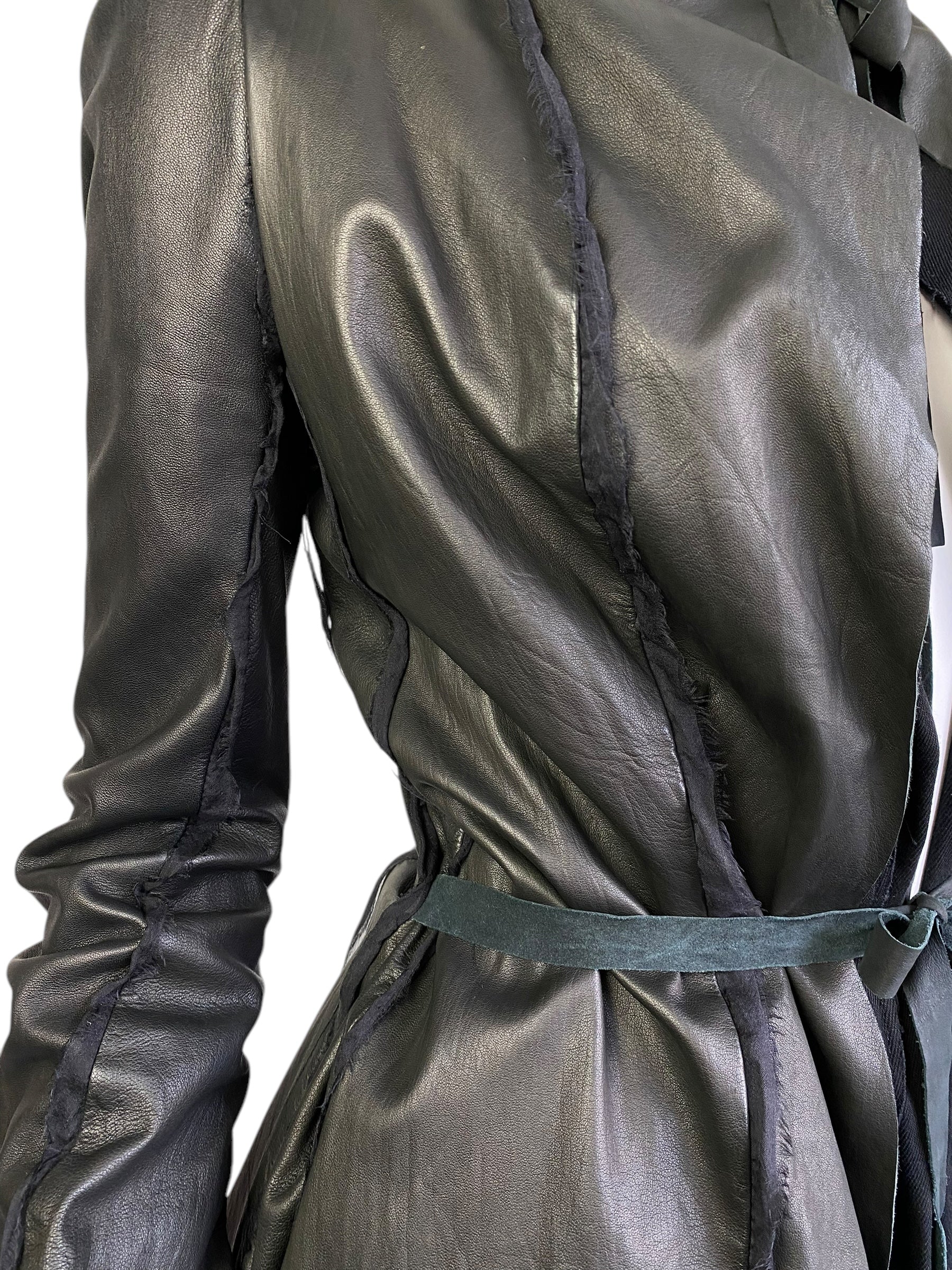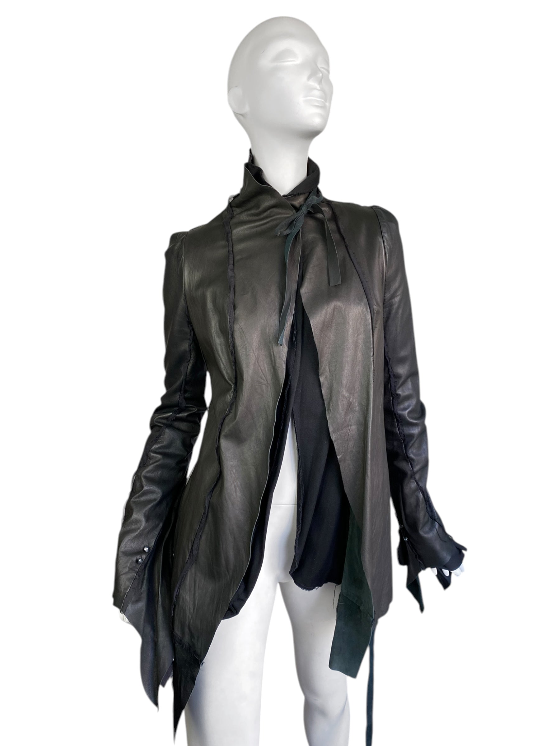 SHARON WAUCHOB FW2006 GREY LEATHER SILK TRIM ARTISANAL JACKET