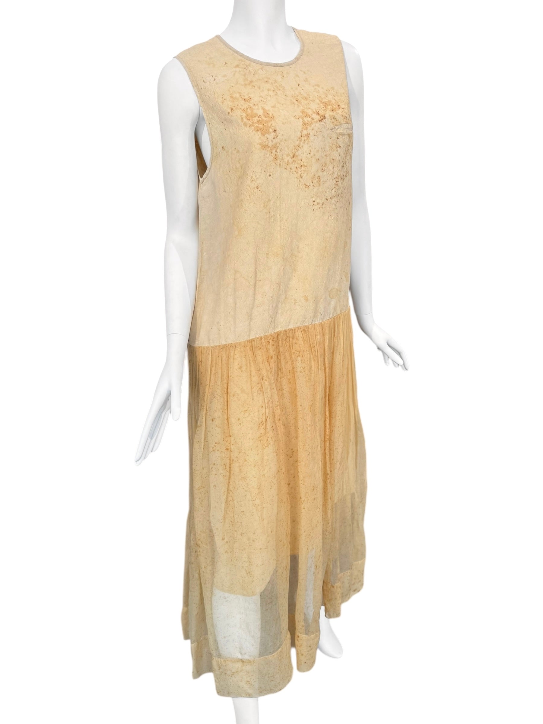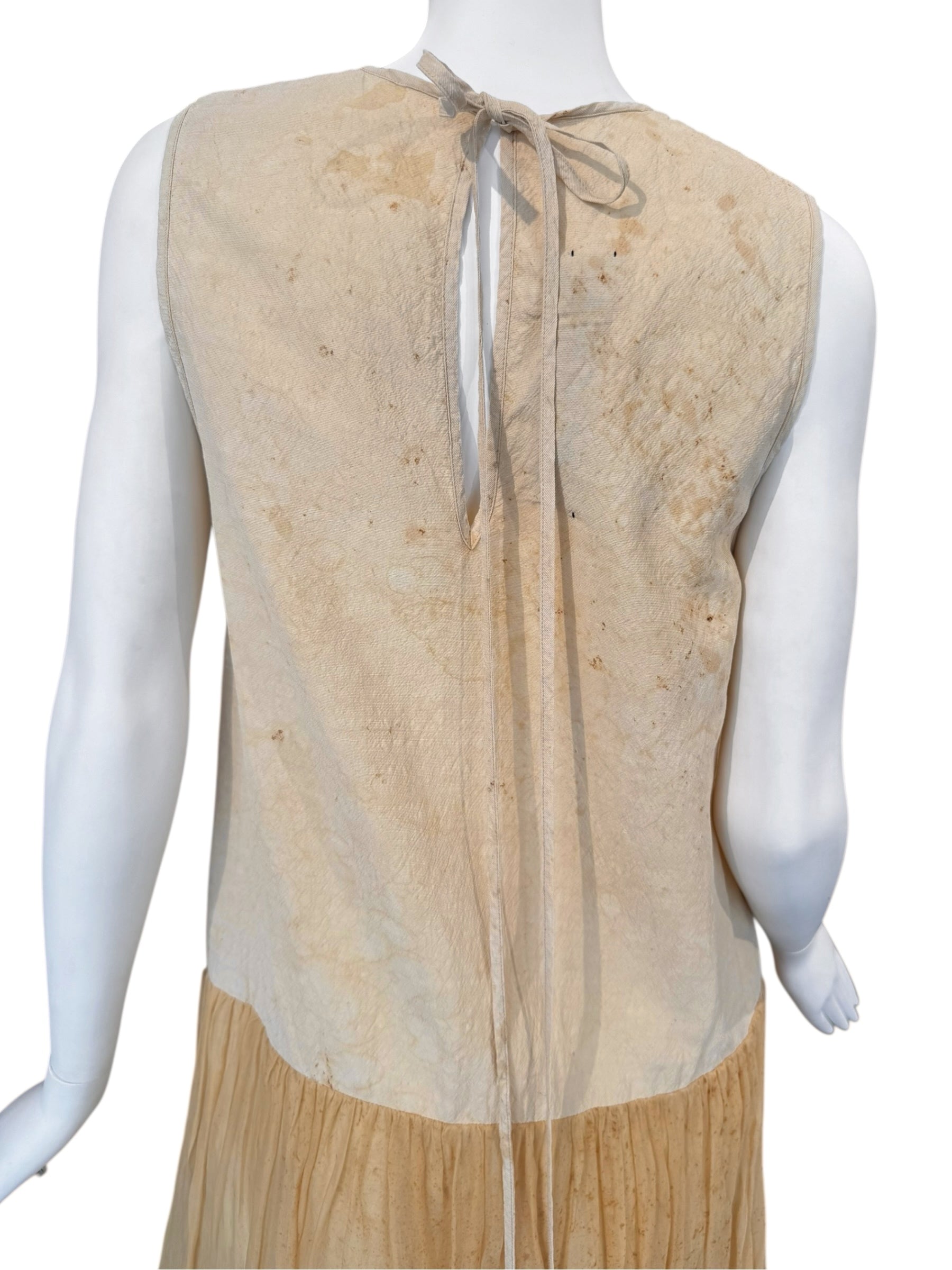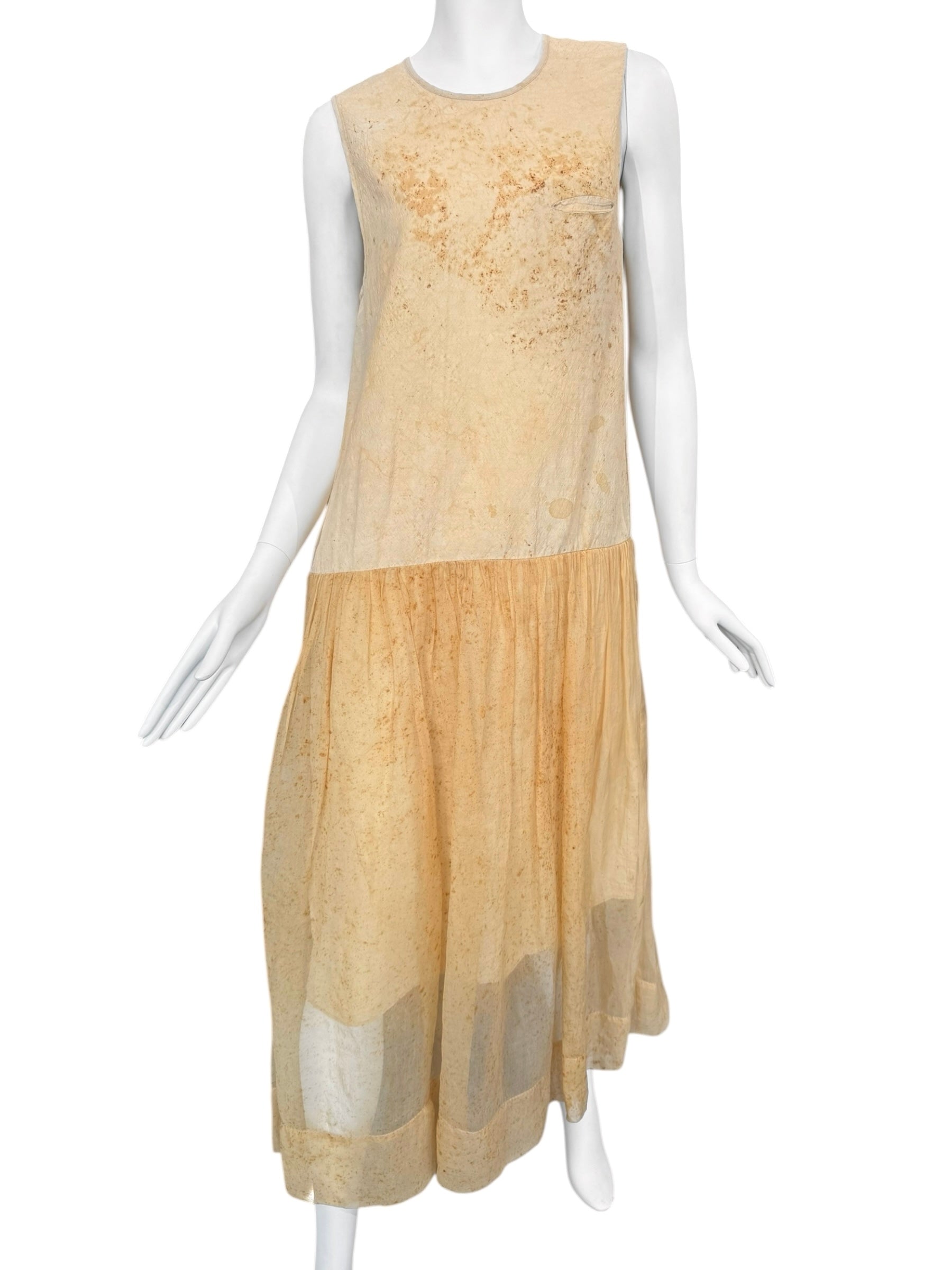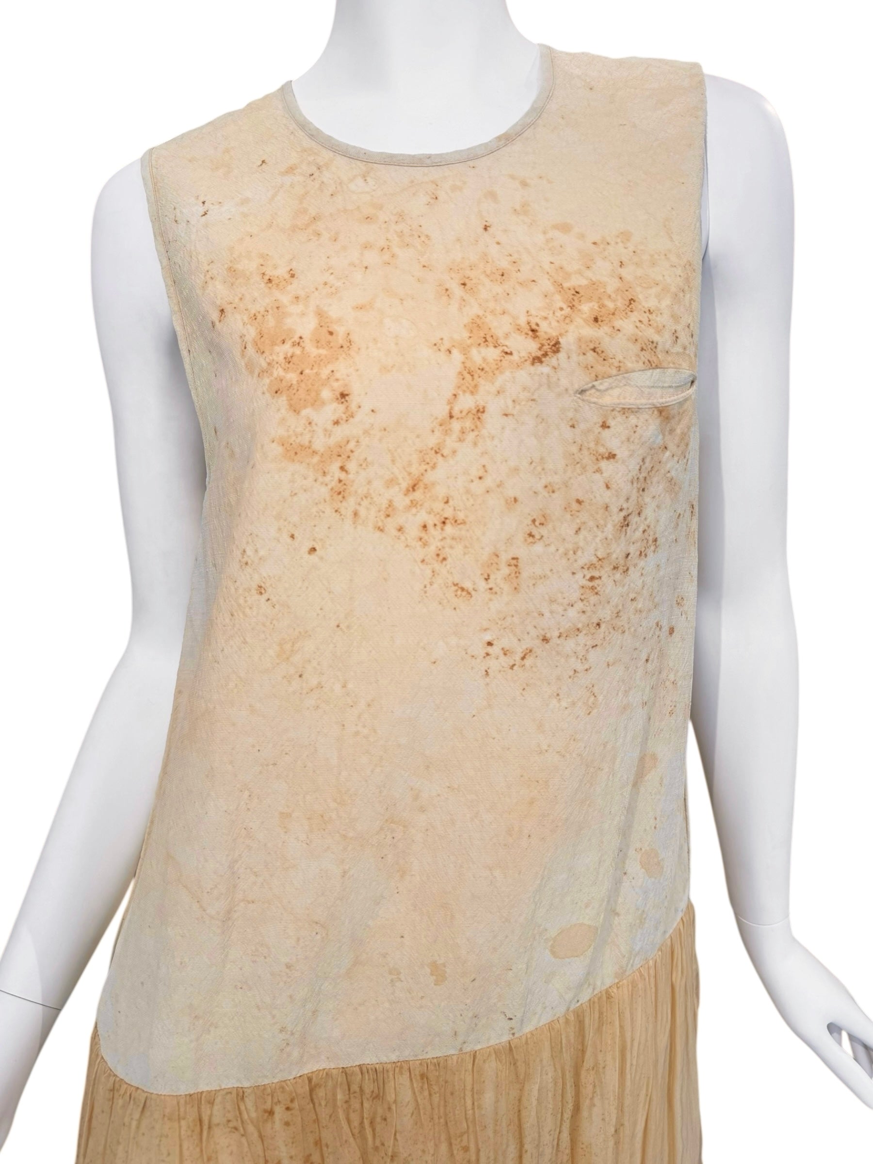 UMA WANG SS2019 YELLOW LINEN & SILK STAINED A-LINE MAXI DRESS