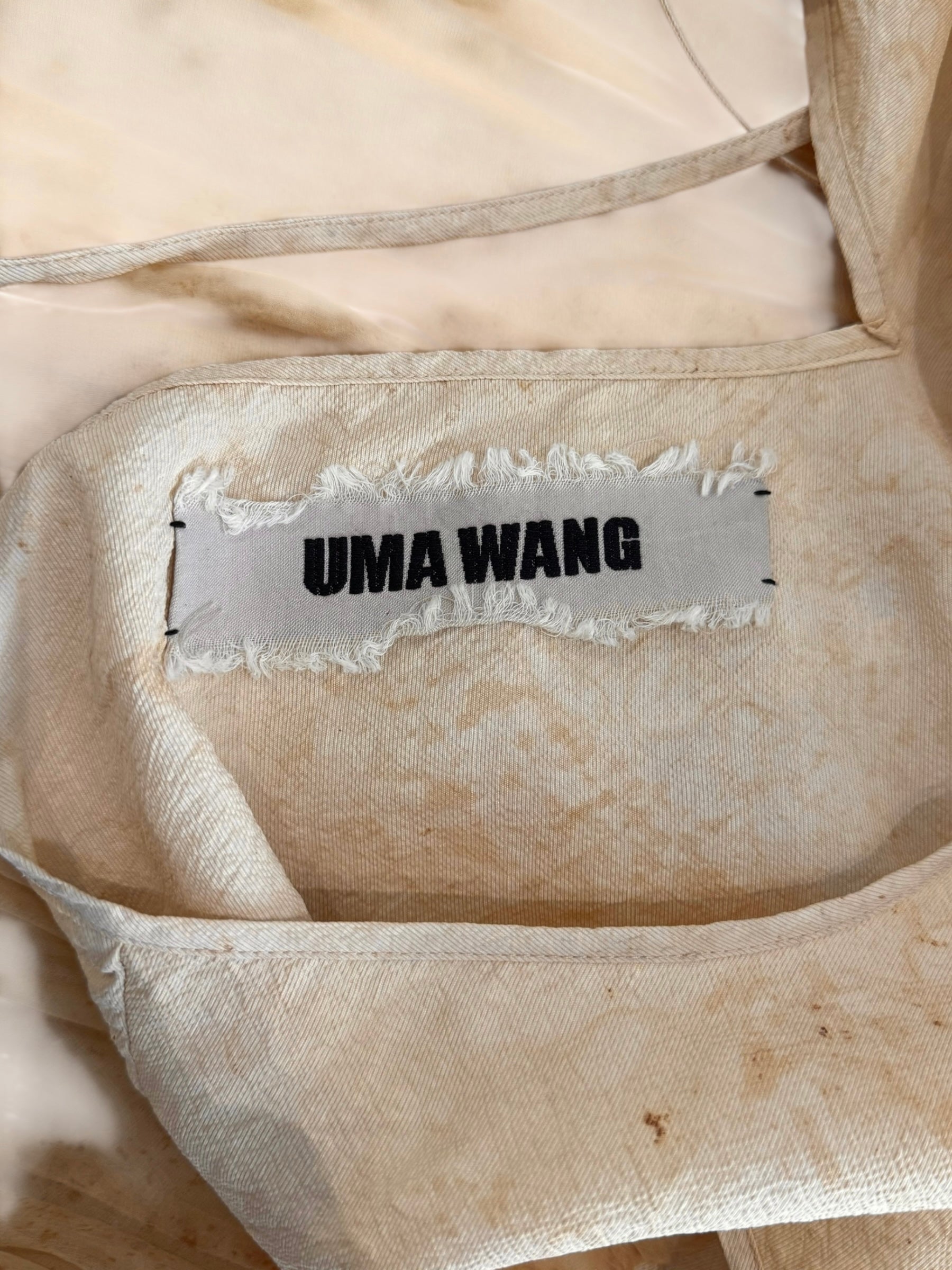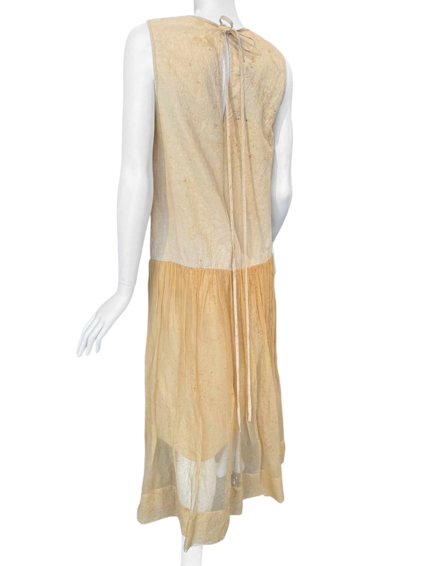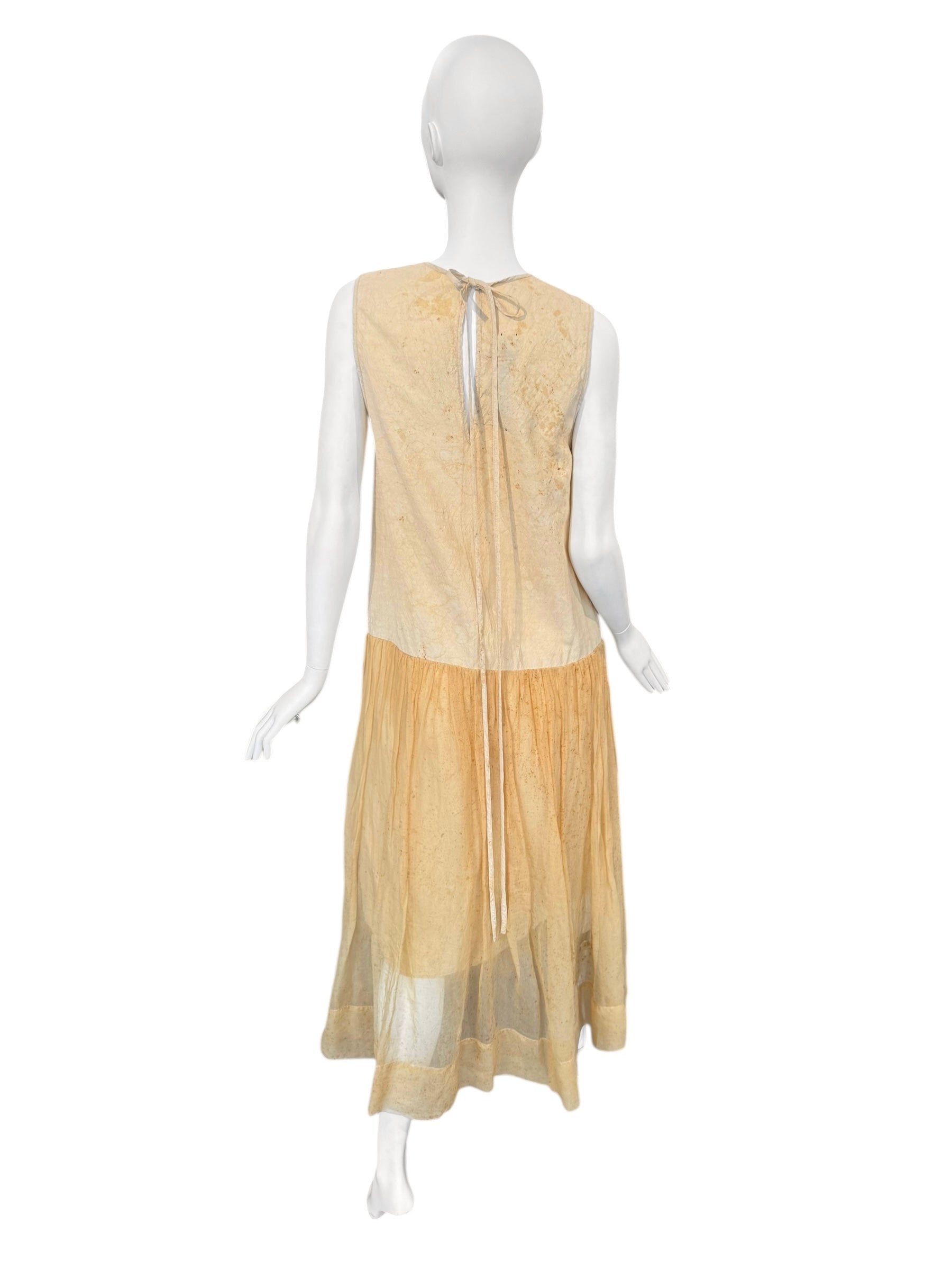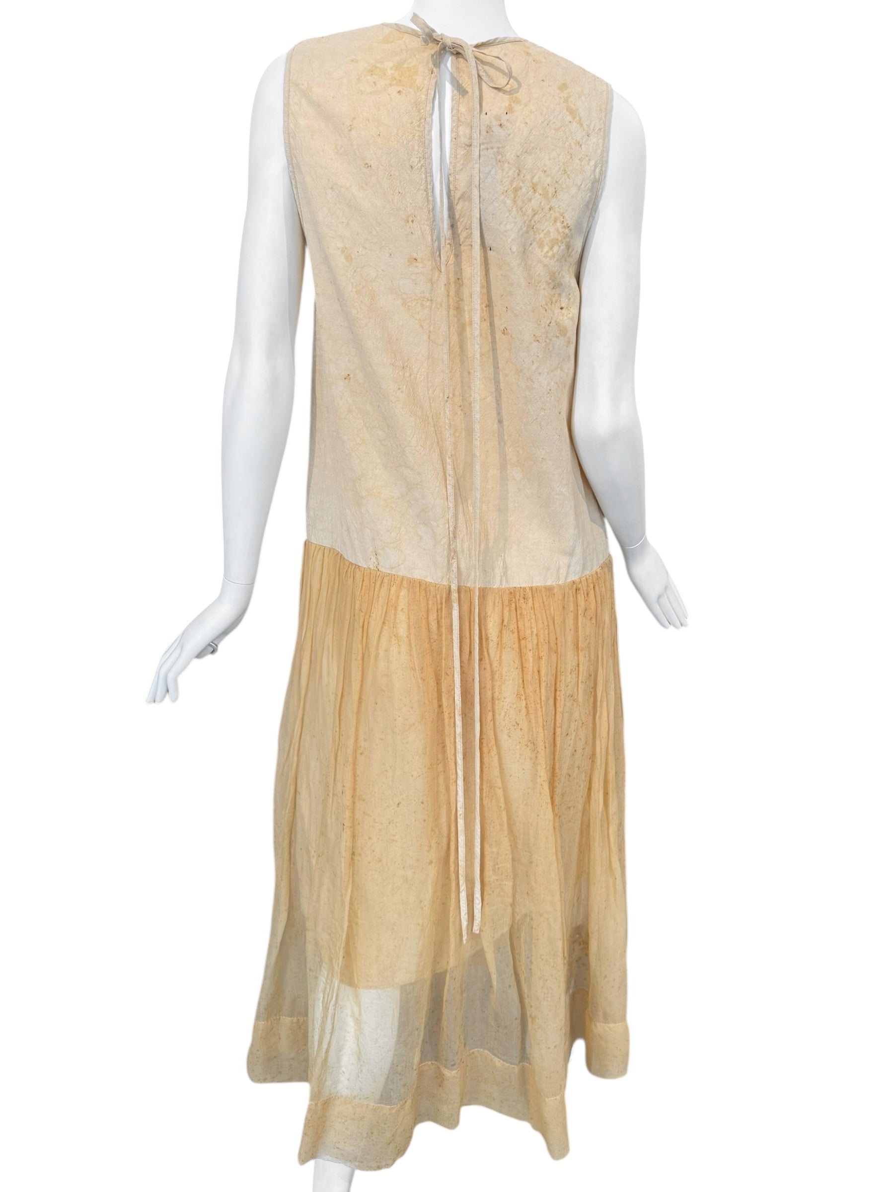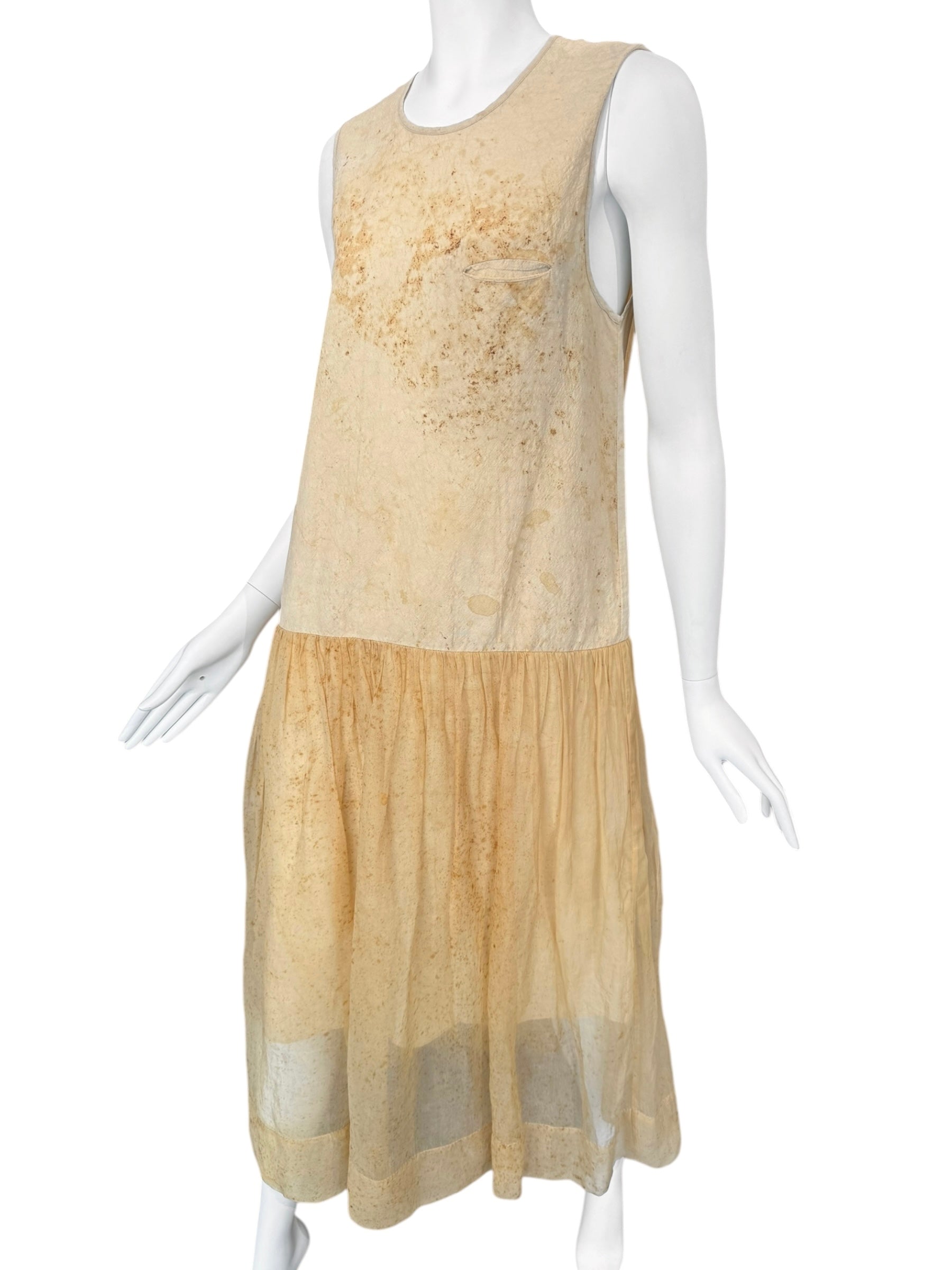 UMA WANG SS2019 YELLOW LINEN & SILK STAINED A-LINE MAXI DRESS