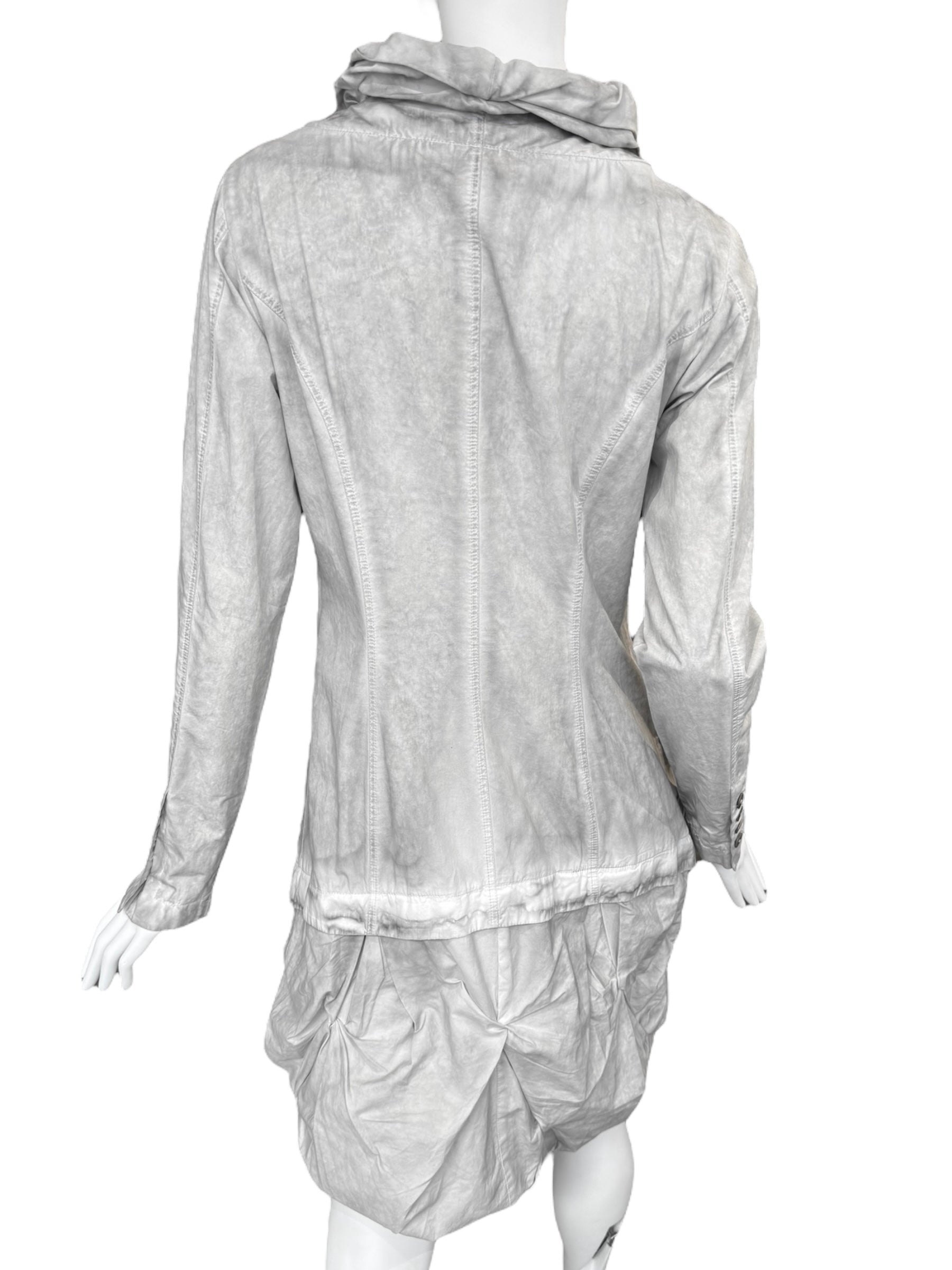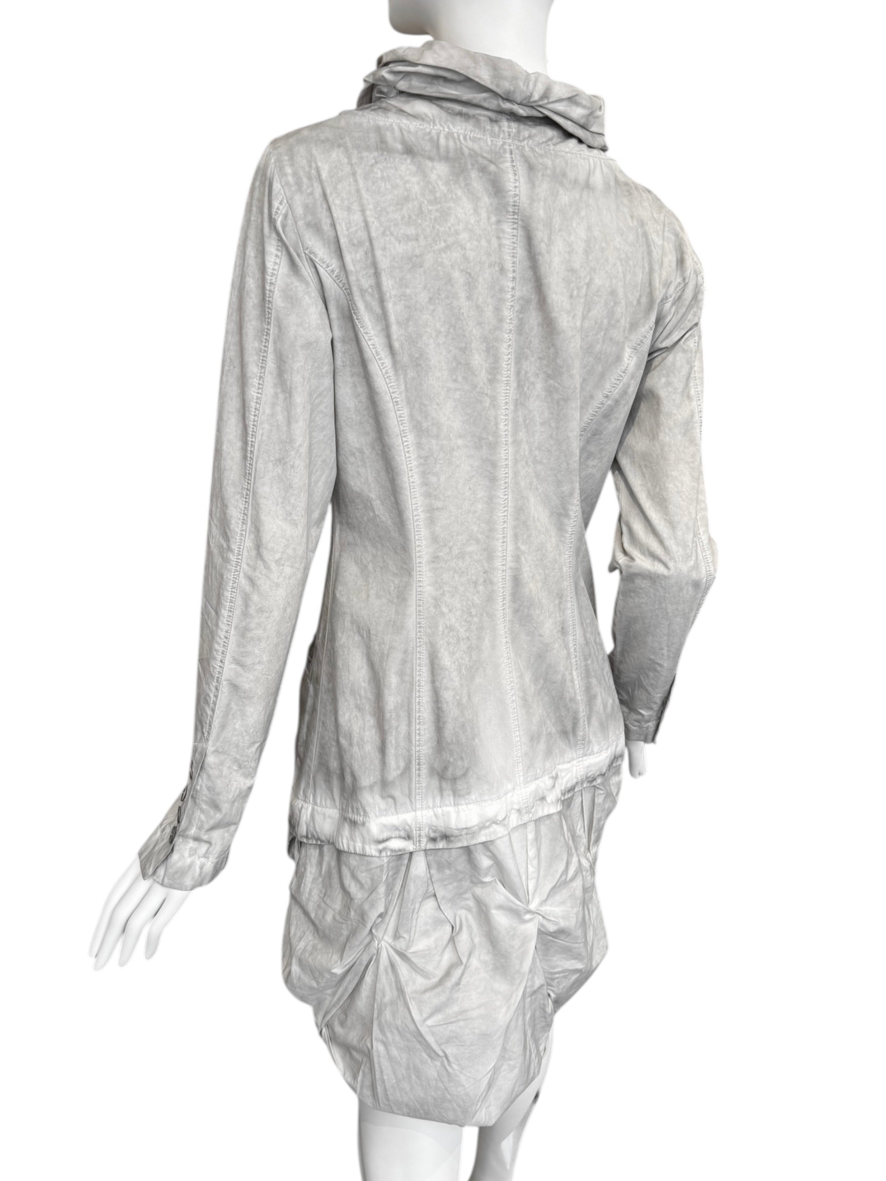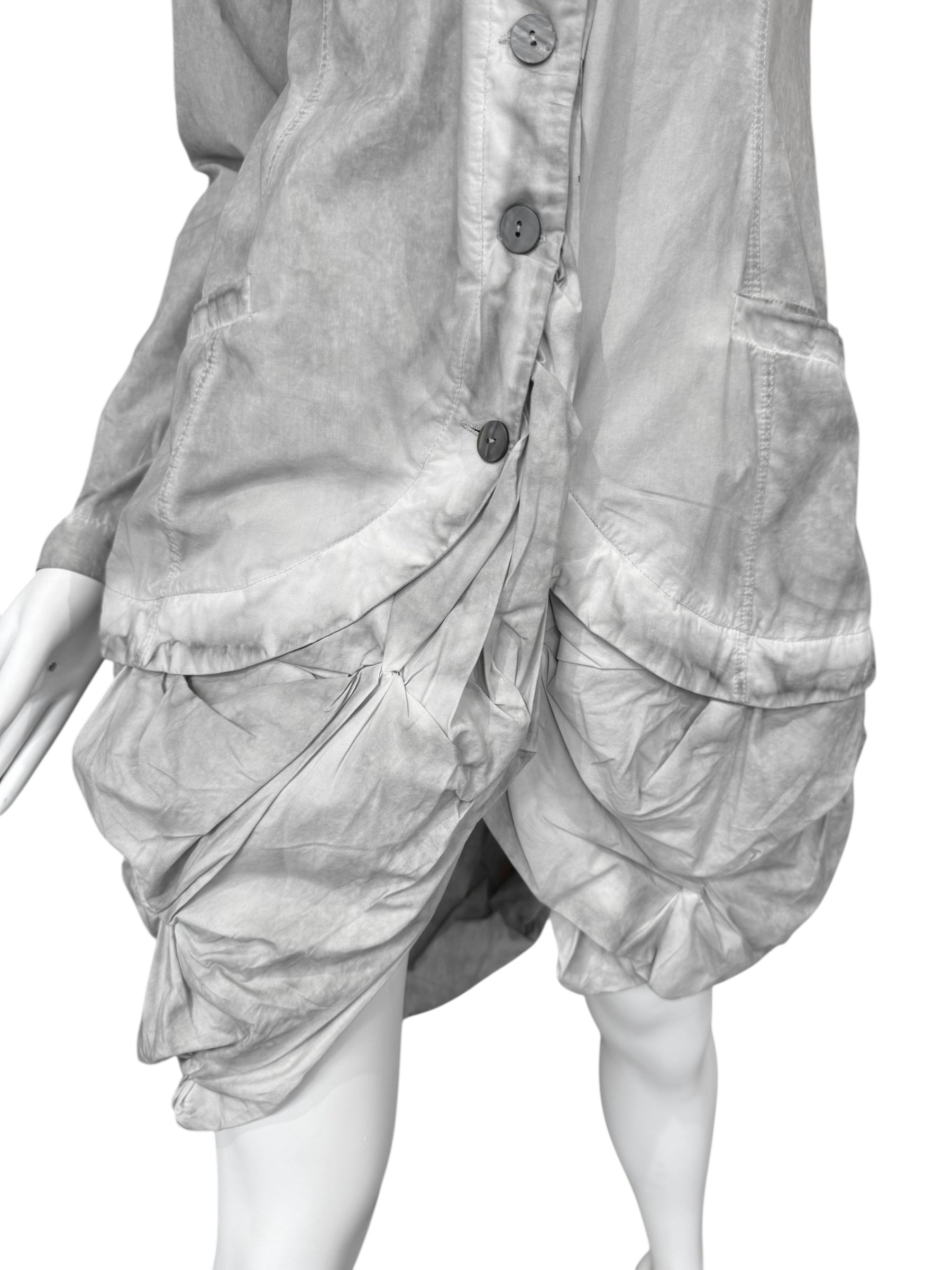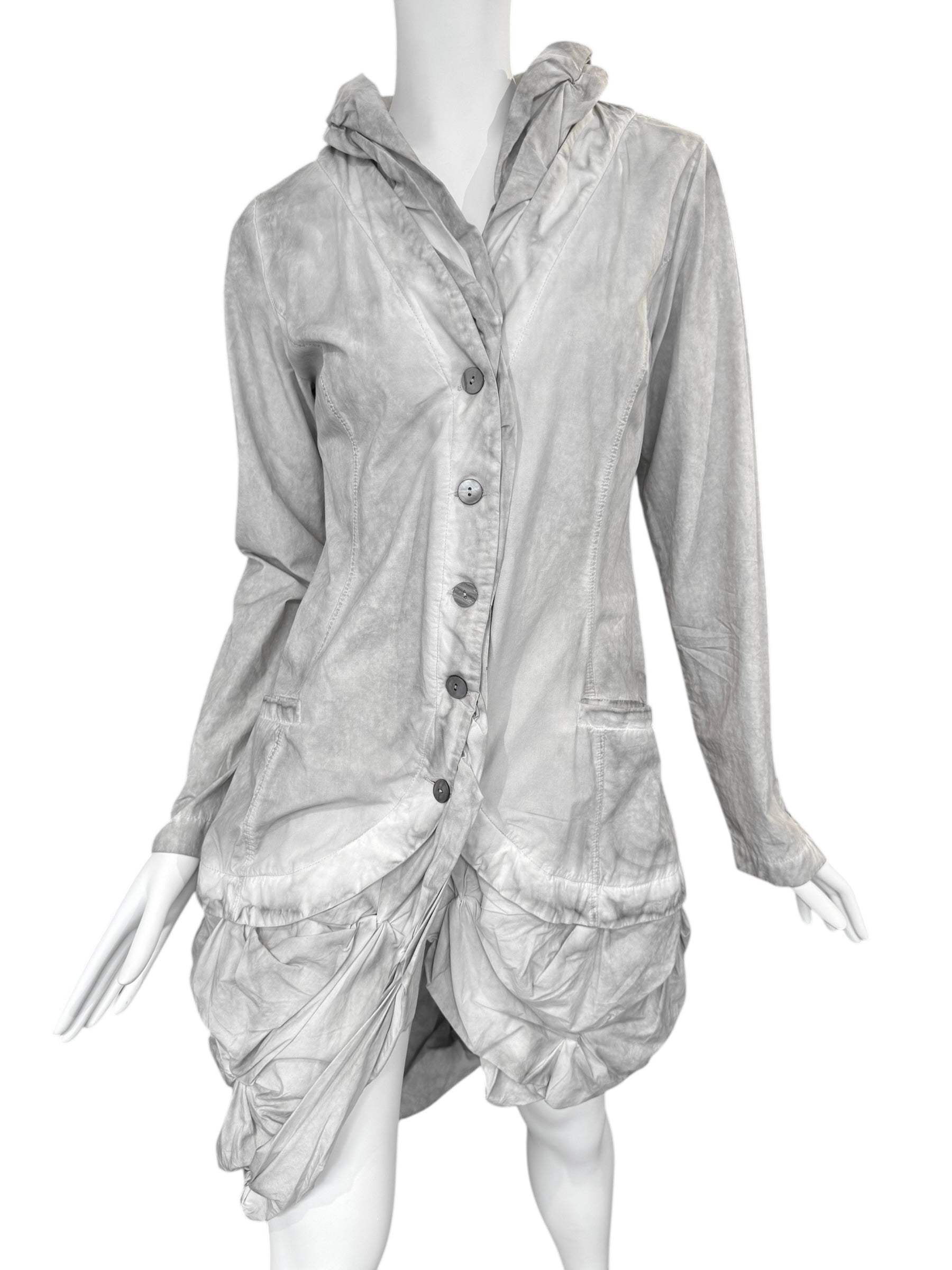 Y’S YOHJI YAMAMOTO 2000s GREY RUSHED DRAPED HEM LIGHTWEIGHT COAT