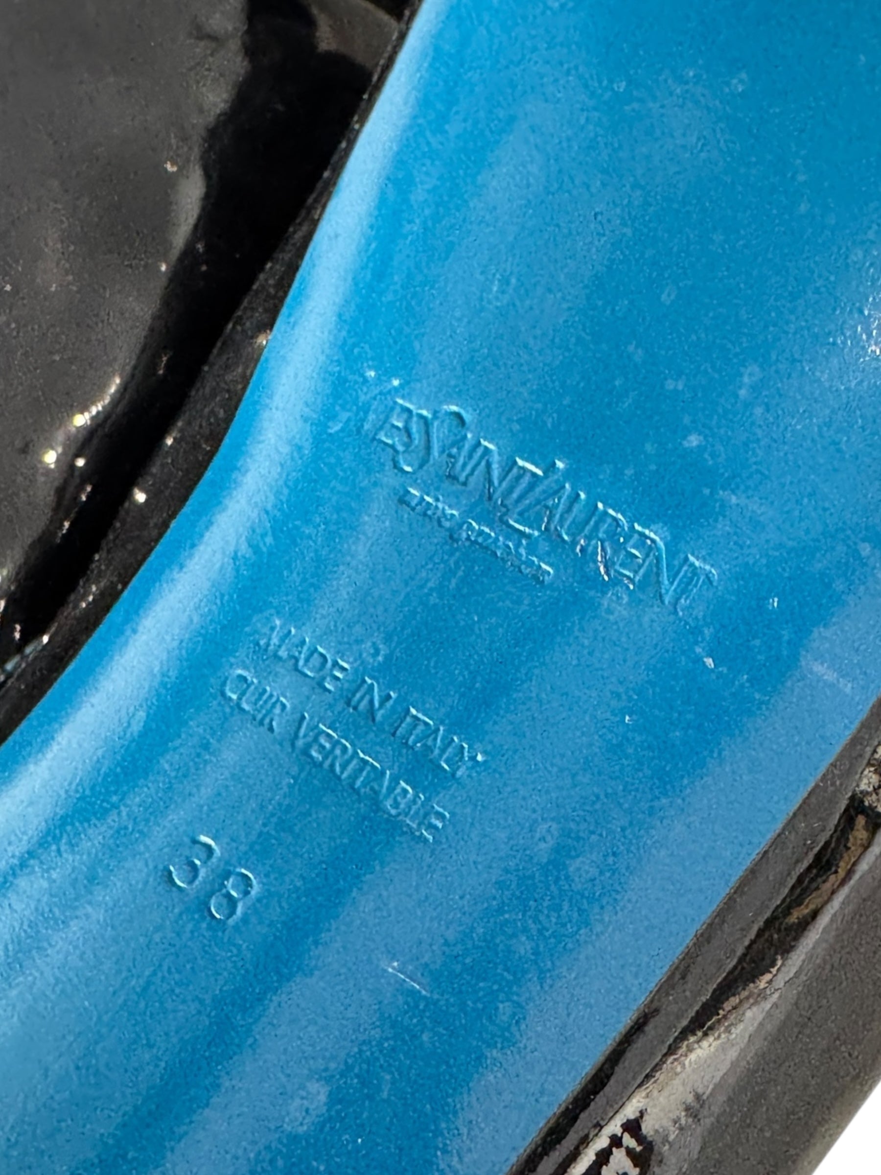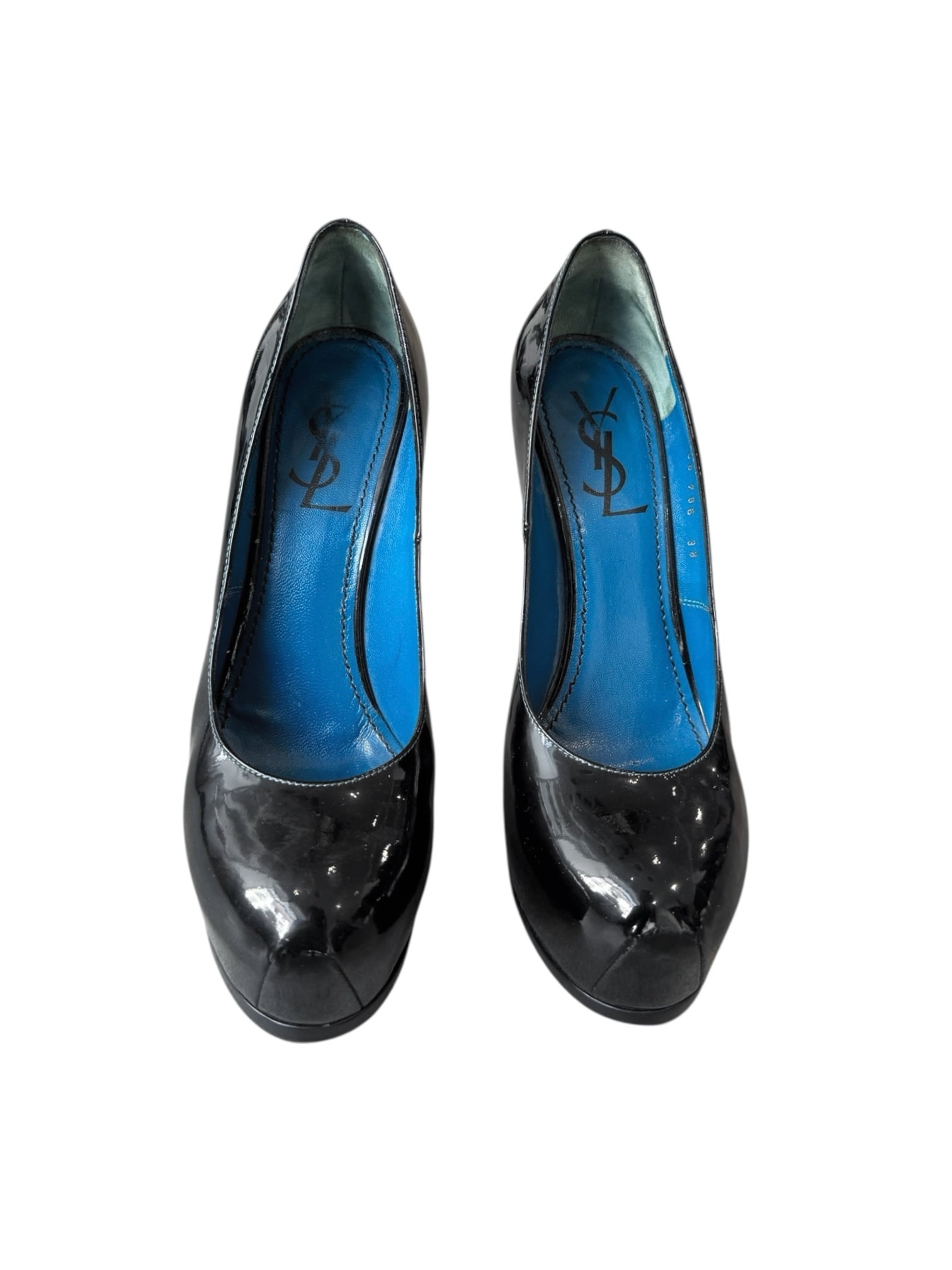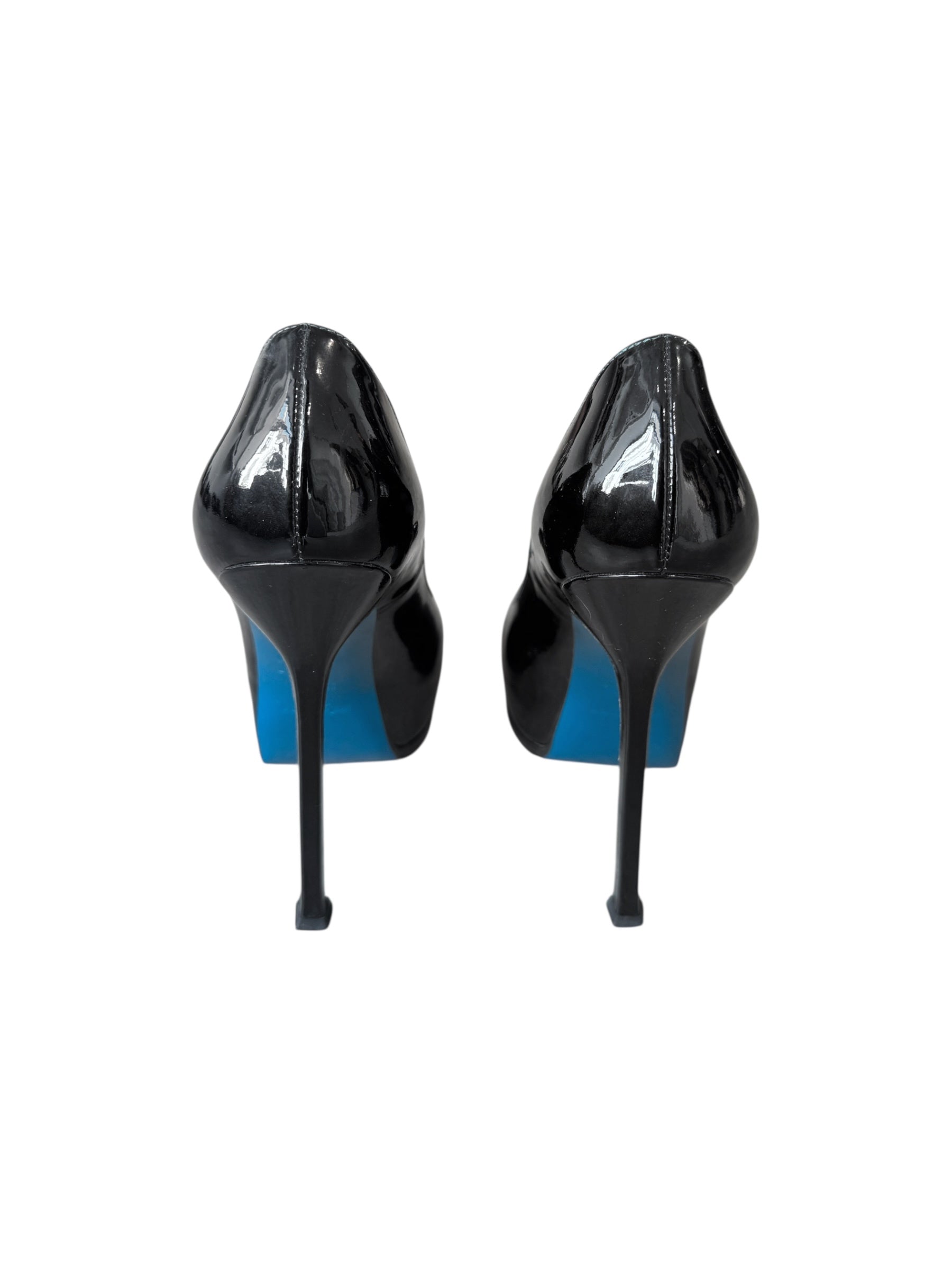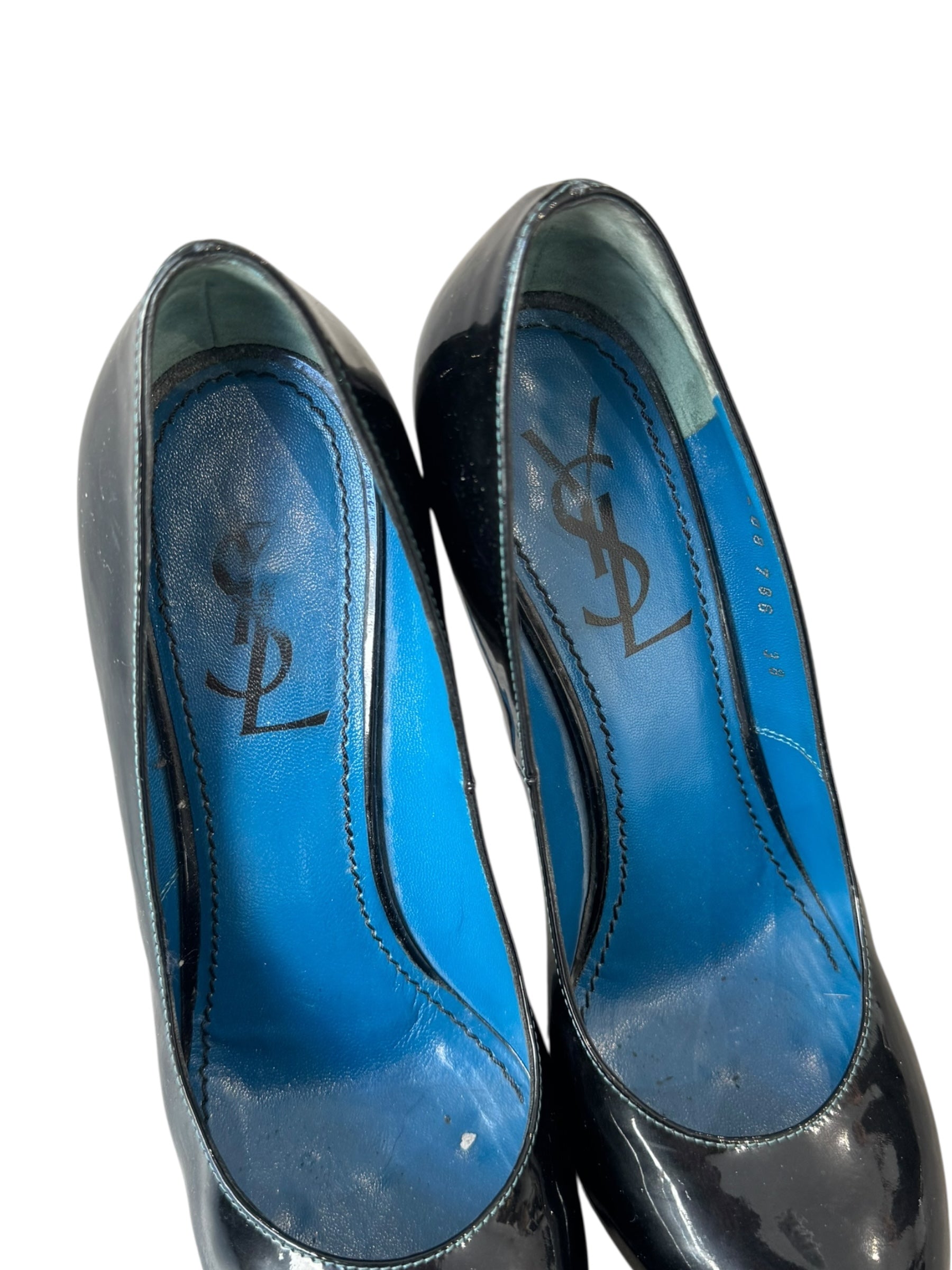 YVES SAINT LAURENT FW2008 BY STEFANO PILATI BLACK PATENT LEATHER TRIBTOO HEELS